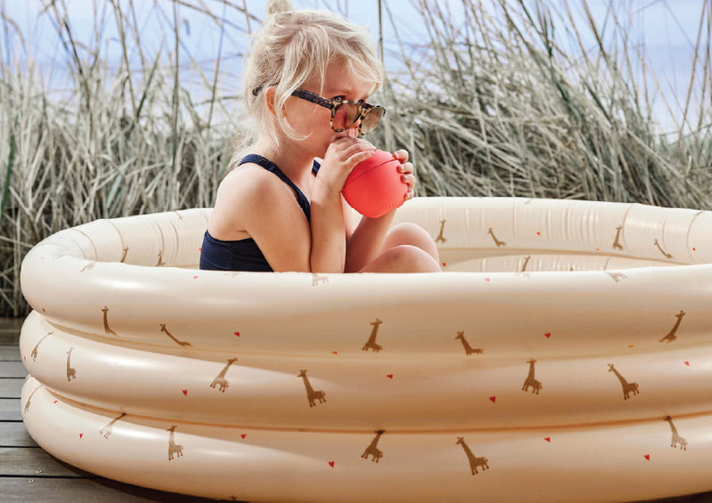 The Giraffe Swimming Pool Small & Beach Ball will be your go-to for cooling down in the summer heat. Crafted from 100% PVC, this inflatable pool and beach ball combo offers a refreshing escape. Adorned with the well-known OYOY print and characters, it adds a touch of whimsy to your summer fun. Available in different sizes and colors.