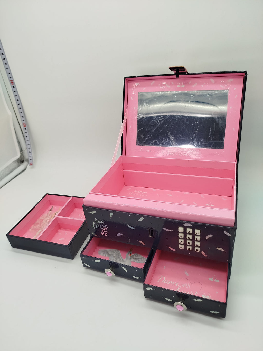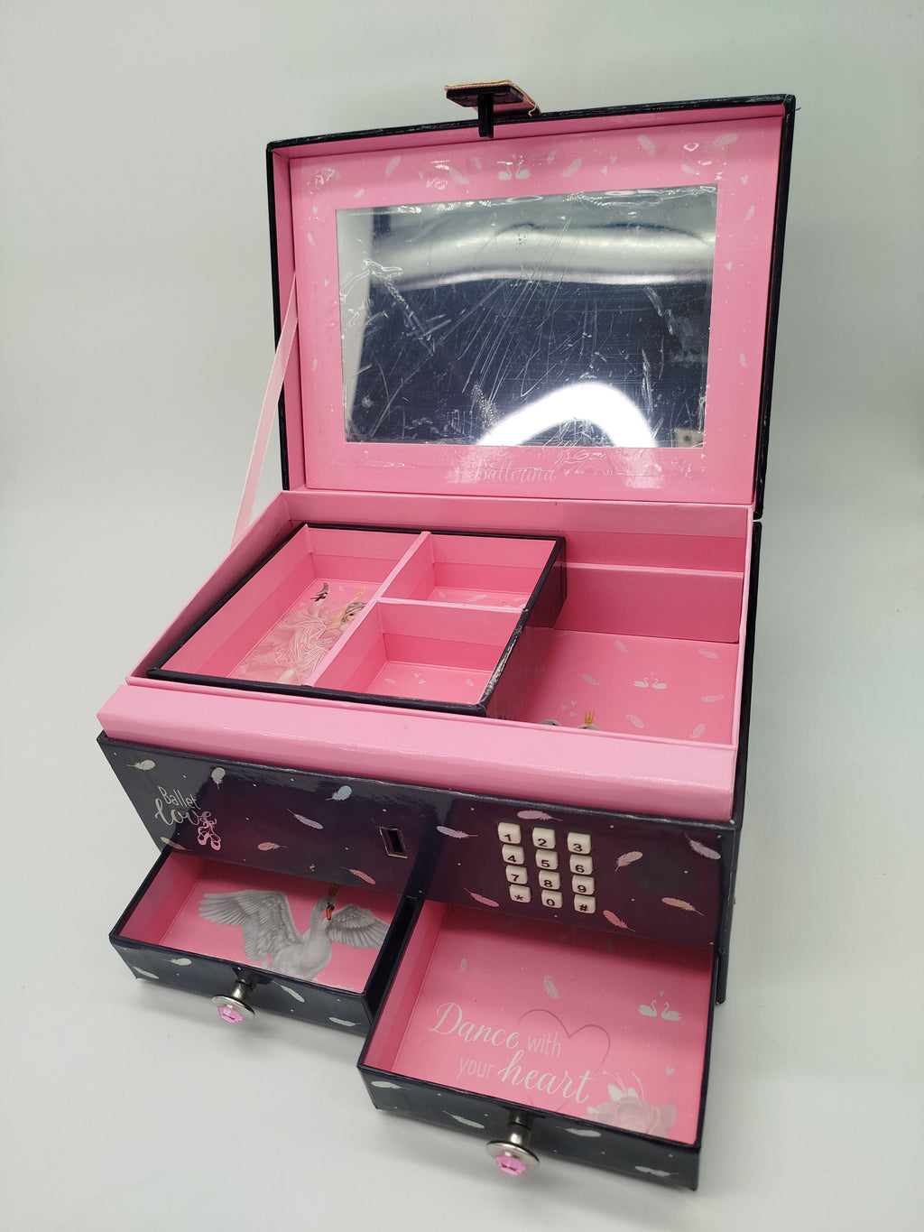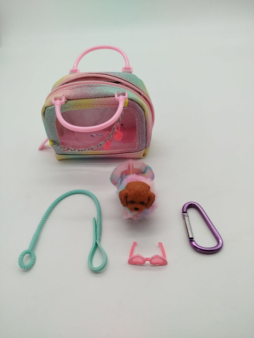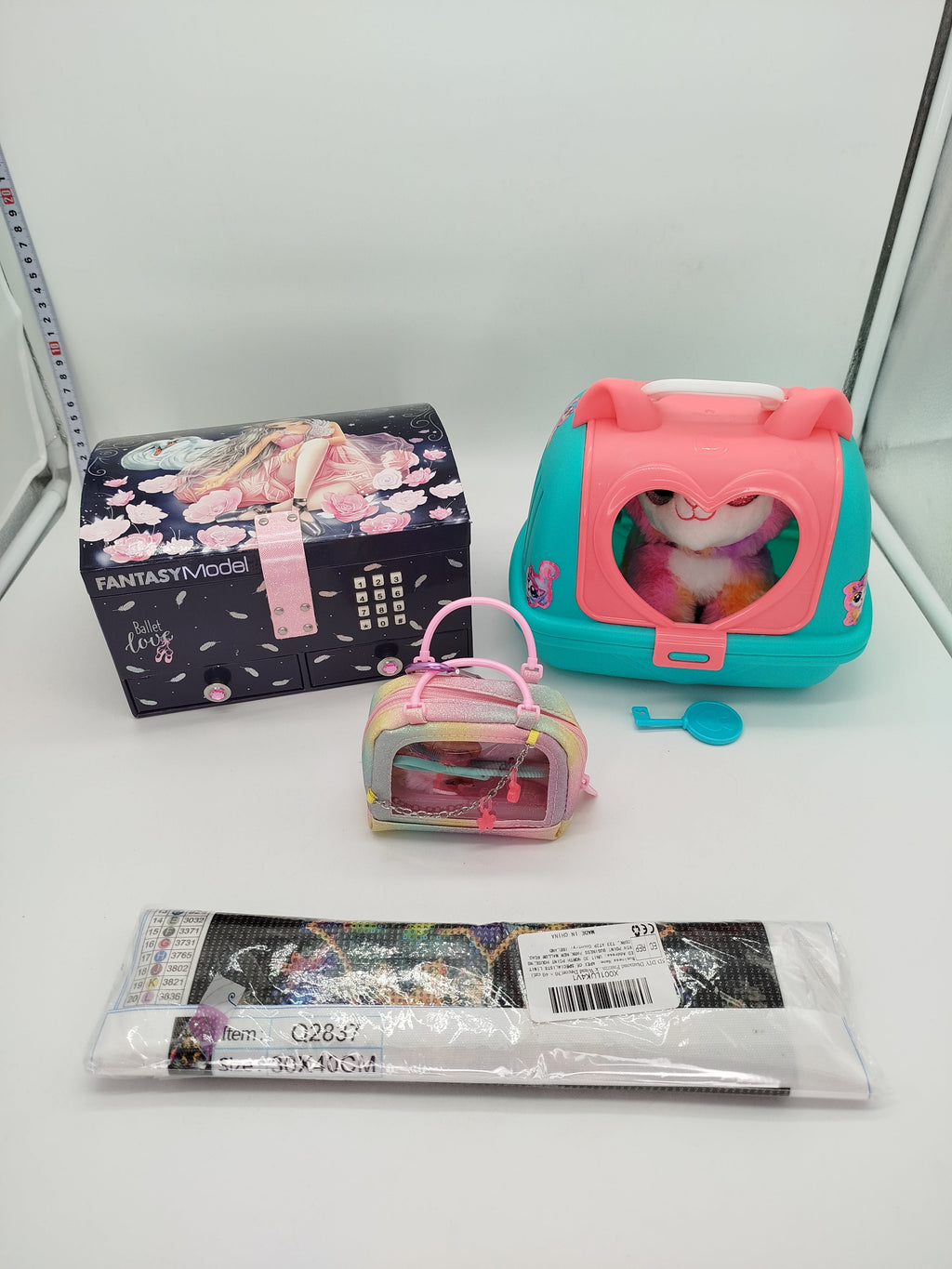 Dieses Spieleset ist eine bunte Mischung an Spielsachen. Es enthält Schmuckkästchen mit Codeverriegelung (Code 1234) der Marke TopModel, das beim Öffnen Musik abspielt. Ein Tier mit Geräuschfunktion und türkisfarbenen Tierträgergehäuse von Pets Alive. Einen glitzernden Mini-Sammlerrucksack mit Welpen und Accessories der Marke Cefa Toys sowie ein Kistall-Malkit, mit dem ein 3D Bild entsteht. Gib diesen Spielsachen ein neues Zuhause und unterstütze die Wiederverwendung von Spielzeug. Die Spielzeuge weisen leichte Gebrauchsspuren auf und kommen ohne Originalverpackungen. Batterien sind im Lieferumfang nicht enthalten. Hinweis: Enthält Kleinteile, nicht geeignet für Kinder unter 3 Jahren. Erstickungsgefahr!