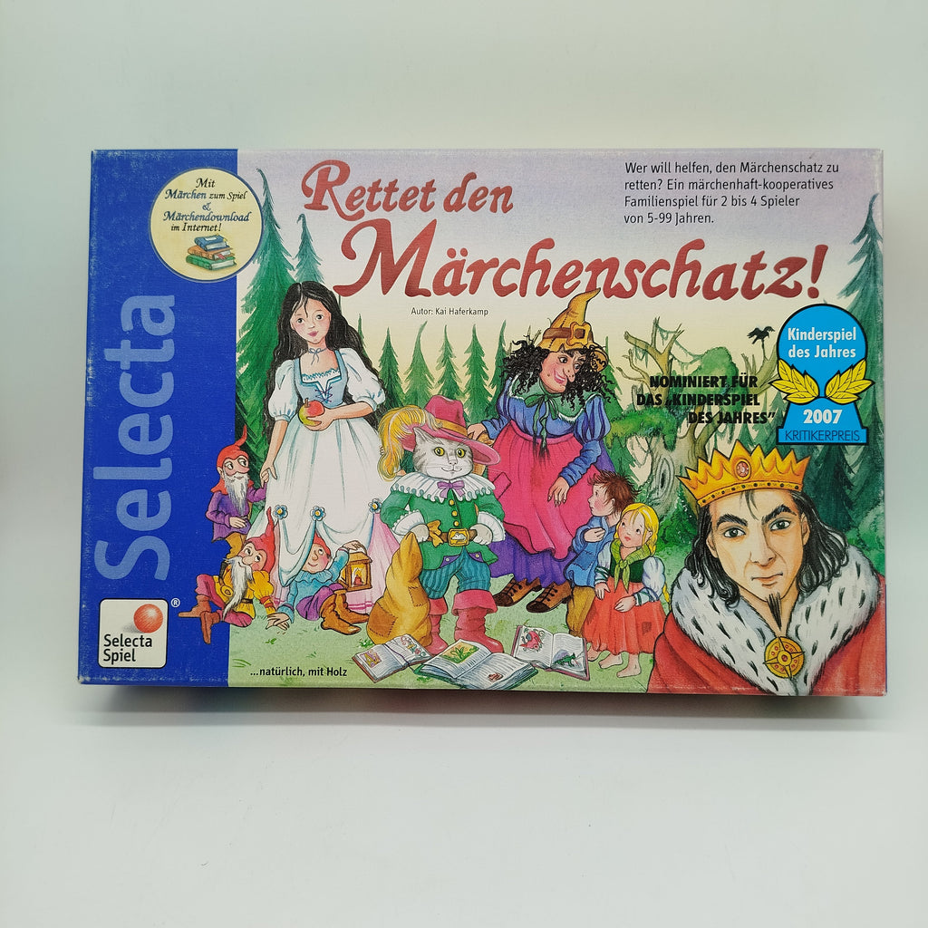 Hol dir das kooperative Brettspiel „Rettet den Märchenschatz!“ von Selecta Spiel und erlebe spannende Abenteuer mit bekannten Märchenfiguren. Das Spiel ist vollständig und enthält eine mehrsprachige Anleitung in Originalverpackung. Die Schachtel zeigt leichte Gebrauchsspuren an den Ecken, die Spielmaterialien sind in sehr gutem Zustand. Ideal für 2 bis 4 Spieler ab 5 Jahren, mit einer Spieldauer von etwa 20–30 Minuten. Dieses Spiel wurde 2007 für das Kinderspiel des Jahres nominiert – gib ihm ein neues Zuhause und rette den Märchenschatz erneut!