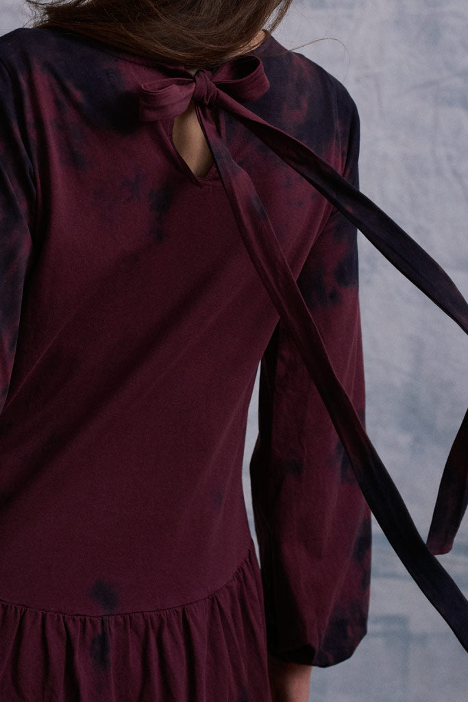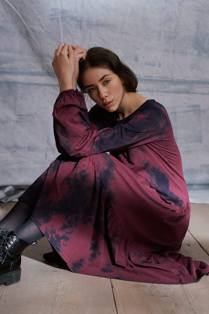 Gebatiktes Midi-Kleid in navy und dark plum von Love Kidswear. Love Kidswear produziert unter fairen Bedingungen in Portugal.