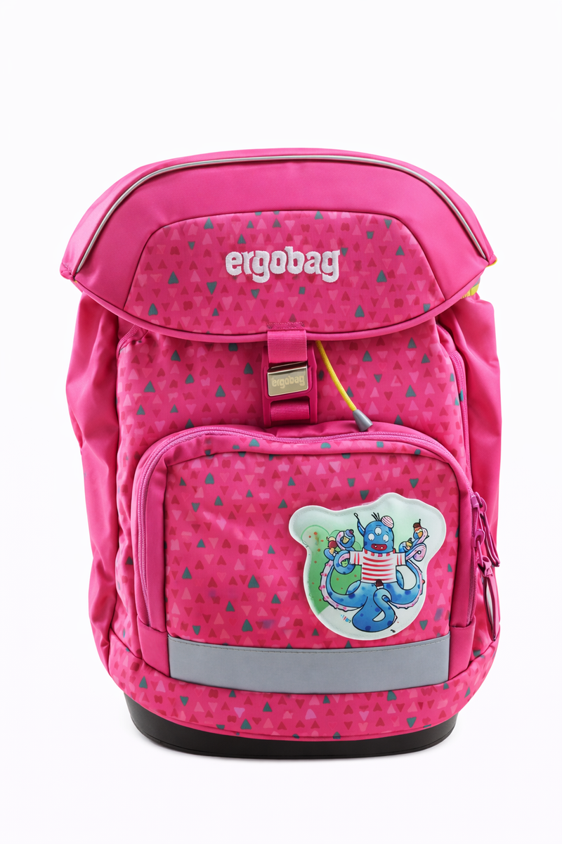 Der ergobag Prime ist ein beliebter, ergonomischer Schulrucksack, der speziell für Grundschulkinder (1. bis 4. Klasse, 100–150 cm Körpergröße) entwickelt wurde und sich durch sein mitwachsendes Tragesystem und die Verwendung von recycelten Materialien auszeichnet. ergobag Prime – Der ergonomische Schulranzen mit mitwachsendem TragesystemMit einem Leergewicht von ca. 1.100 Gramm bietet der ergobag Prime eine ausgewogene Kombination aus Stabilität und Tragekomfort. Das höhenverstellbare Your-Size-System ermöglicht eine individuelle Anpassung an die Rückenlänge des Kindes und unterstützt ein ergonomisches Tragen über mehrere Schuljahre hinweg. Der Magnetverschluss erlaubt ein einfaches, einhändiges Öffnen und Schließen. Das gepolsterte Rückenteil sowie ergonomisch geformte Schultergurte sorgen für eine gleichmäßige Lastverteilung und einen stabilen Sitz. Das flexible Rucksackdesign passt sich dem Inhalt an und hält den Schwerpunkt nah am Rücken.Hauptmerkmale und ErgonomieDer ergobag Prime kombiniert das ergonomische Konzept moderner Trekking-Rucksäcke mit den Anforderungen an Schultaschen. Mitwachsendes Tragesystem: Das Herzstück ist das "Your-Size-System", ein höhenverstellbares Rückensystem, mit dem der Rucksack präzise an die Körpergröße des Kindes von 100 cm bis 150 cm angepasst werden kann.Gleichmäßige Gewichtsverteilung: Ein gepolsterter Beckengurt (Hüftgurt) und ein Brustgurt verlagern das Gewicht von den Schultern auf das stabilere Becken, was den Rücken entlastet und für optimalen Tragekomfort sorgt.Anatomische Formgebung: Die Rückenpartie ist ergonomisch geformt und gepolstert, um sich eng an den Kinderrücken anzuschmiegen. Ein interner Tunnelzug komprimiert den Inhalt und hält ihn nah am Körper, um die Hebelwirkung zu minimieren.Stabilität und Organisation: Eine stabile, wasserdichte Bodenwanne sorgt für einen sicheren Stand. Im Inneren helfen ein unterteiltes Hauptfach und eine separate Heftebox, Ordnung zu halten und Eselsohren zu vermeiden. Materialien und NachhaltigkeitDer ergobag Prime setzt auf Nachhaltigkeit und verantwortungsvolle Produktion. Recycelte Materialien: Die Außenstoffe des Rucksacks werden zu 100 % aus recycelten PET-Flaschen hergestellt (ca. 16 Flaschen pro Rucksack).Wasserabweisend: Die Materialien sind imprägniert und mit einer Wassersäule von 1.500 mm stark wasserabweisend. Die Bodenplatte ist wasserdicht, um den Inhalt vor Feuchtigkeit zu schützen.Fair Wear Foundation: Ergobag ist Partner der Fair Wear Foundation und verpflichtet sich zur Einhaltung fairer Arbeitsbedingungen. Individualisierung und ZubehörDer Rucksack kann individuell an den Geschmack des Kindes angepasst werden. Kletties: Der Prime verfügt über Klettflächen, die mit austauschbaren Kletties (Klettbildern) versehen werden können, um das Design zu personalisieren.Sichtbarkeit: Reflektierende Elemente rundherum sorgen für bessere Sichtbarkeit im Straßenverkehr, obwohl das Modell selbst nicht nach der strengeren DIN 58124 Norm zertifiziert ist. Optionale, fluoreszierende Zip-Sets können für zusätzliche Sichtbarkeit angebracht werden.Prime Set: Der Rucksack ist oft als umfassendes Set erhältlich, das neben dem Rucksack auch einen Sportrucksack/Turnbeutel (der befestigt werden kann), ein gefülltes Federmäppchen, ein Schlampermäppchen und eine Heftebox enthält.