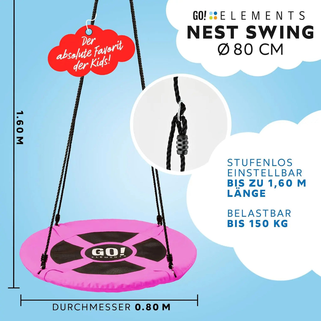 - KINDGERECHT & SICHER - Die NEST SCHAUKEL von GO!elements ist in vielen bunten Farben und verschiedenen Größen erhältlich. Die Schaukel ist sicher verarbeitet. Der gerundete Stahlrahmen ist sicher gepolstert, sodass auch bei turbulentem Einsatz die Verletzungsgefahr auf ein Minimum reduziert ist.