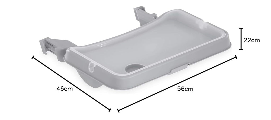 LEICHT ZU REINIGEN: Die glatte Kunststoff-Oberfläche lässt sich einfach reinigen und ist optimal für den täglichen Gebrauch. Das Essbrett und das Tablett sind unabhängig vom Sitzverkleiner abnehmbar