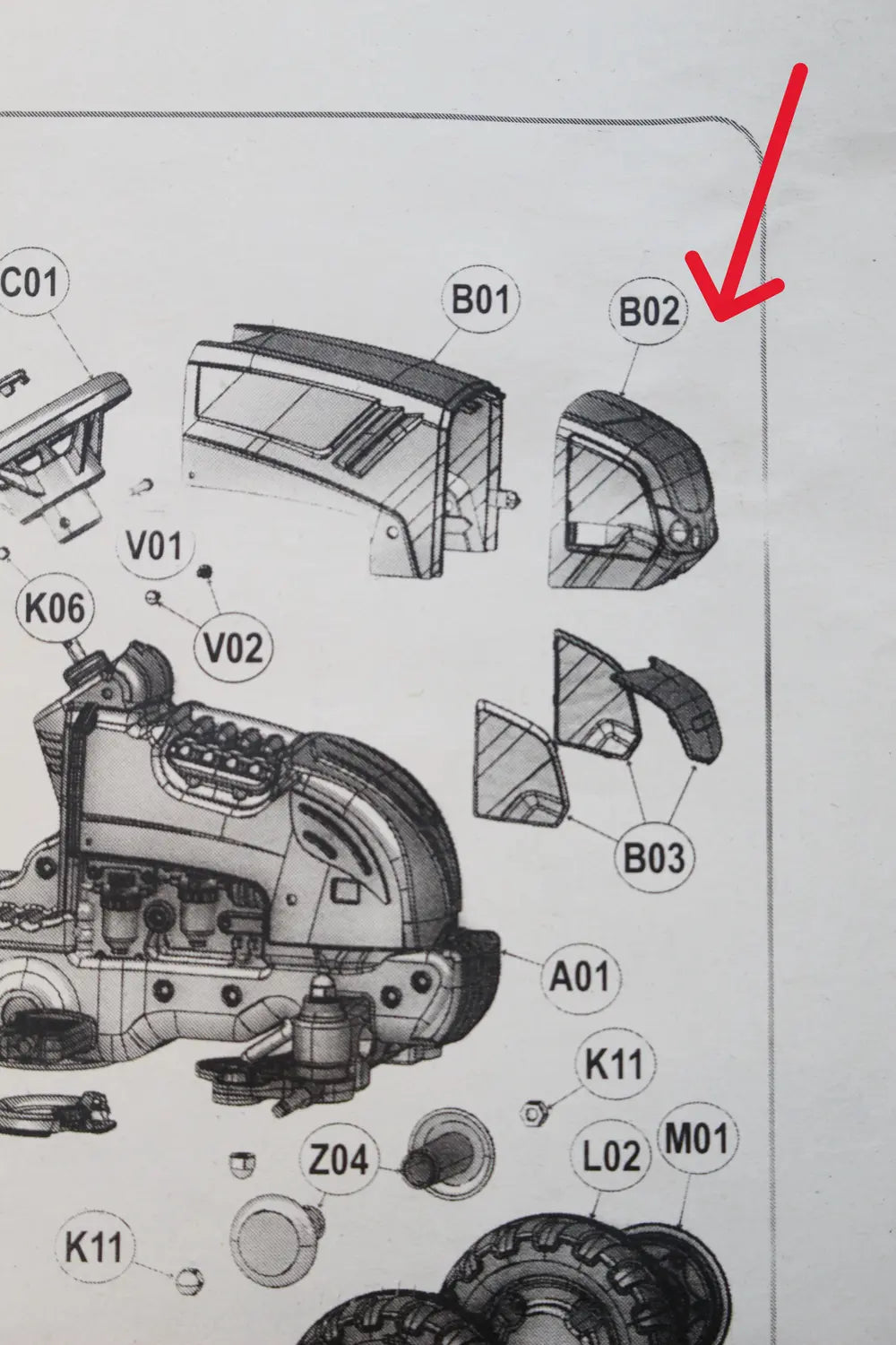 • - vordere bewegliche Schaufel,