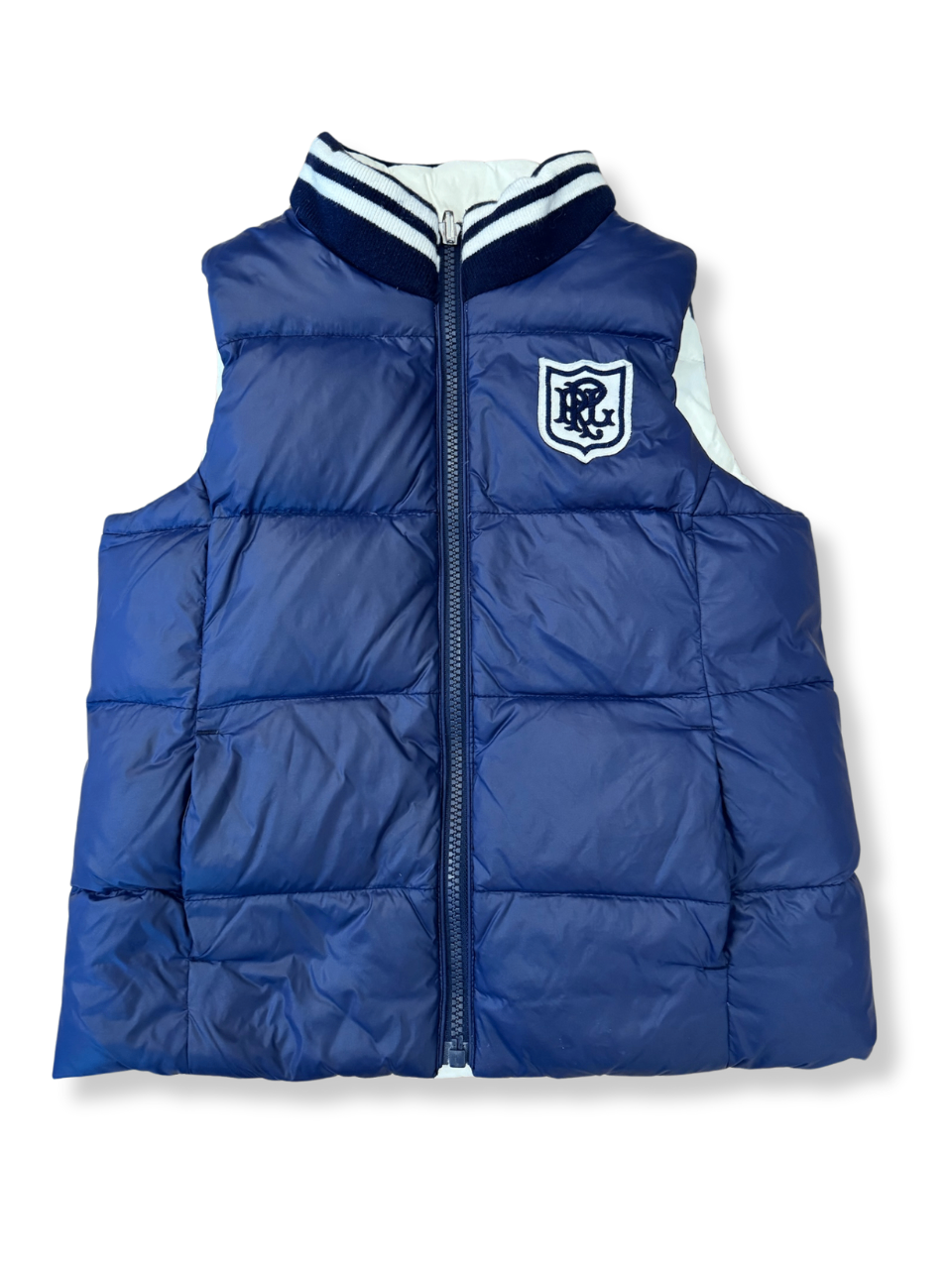 POLO RALPH LAUREN - Wende-Weste aus Daunen, dunkelblau und weiß gehalten, in Größe 128 / 7 - ein echter Hingucker.