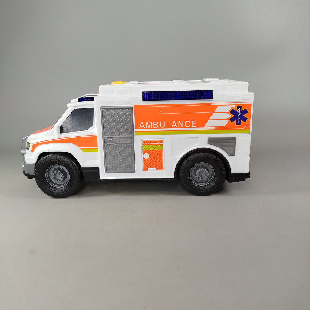 Hol dir das detailreiche Dickie Toys Rettungsfahrzeug und erlebe spannende Einsatzfahrten! Das Ambulanzauto aus Kunststoff verfügt über bewegliche Räder, eine Licht- und Soundfunktion sowie eine Trage im hinteren Bereich. Ideal für Rollenspiele rund um Notfall und Rettung. Verpackung fehlt, das Fahrzeug befindet sich jedoch in einem sehr guten gebrauchten Zustand und ist vollständig. Gib diesem Spielzeug ein neues Zuhause und fördere kreatives Spielen!