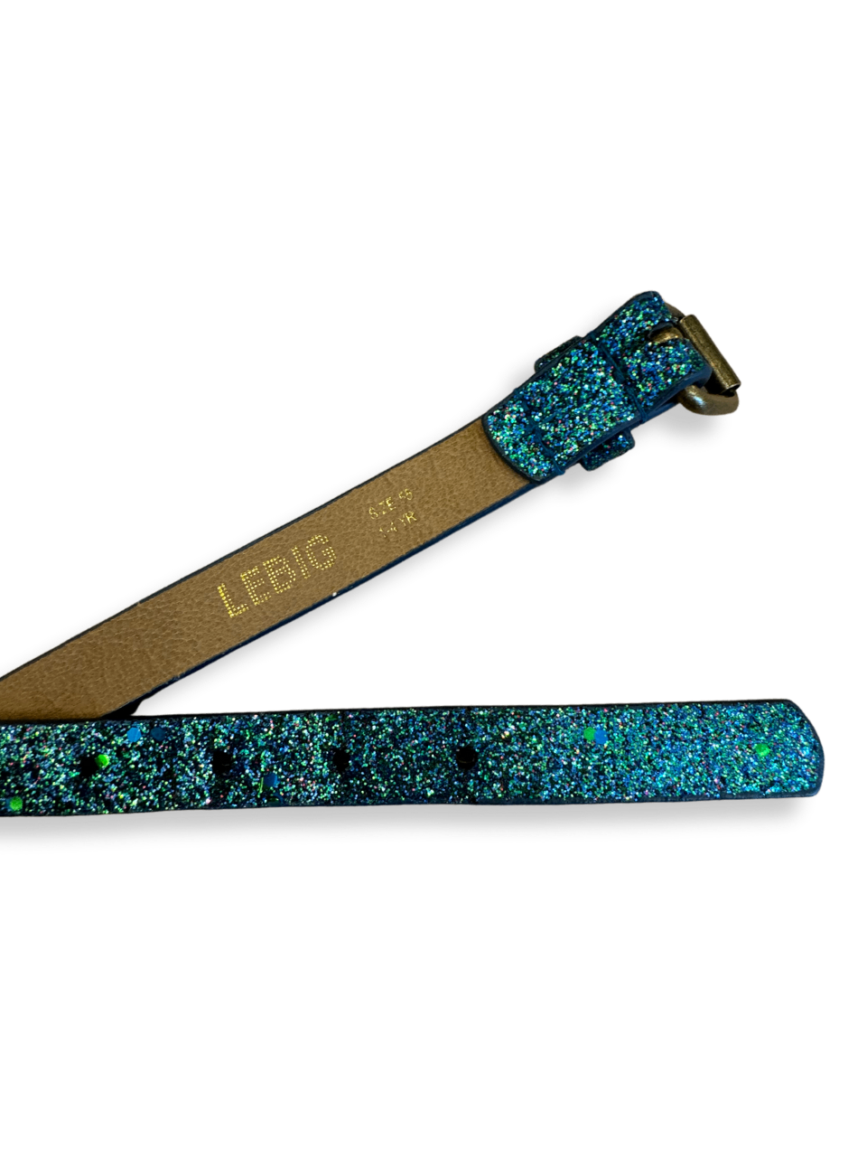 LE BIG - Blauer Glitzergürtel für Mädchen. Perfekt, um jedem Outfit einen Hauch von Funkeln zu verleihen. Länge: 55cm