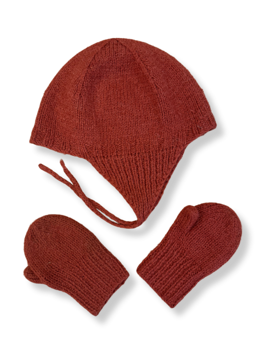 Dieses gemütliche Mützenset aus weicher Wolle hält in der kalten Jahreszeit wunderbar warm. Die ziegelrote Farbe sorgt für einen klassischen Look, der einfach zu kombinieren ist. Die Mütze schmiegt sich weich an den Kopf an und die passenden Handschuhe halten die Hände angenehm warm. I