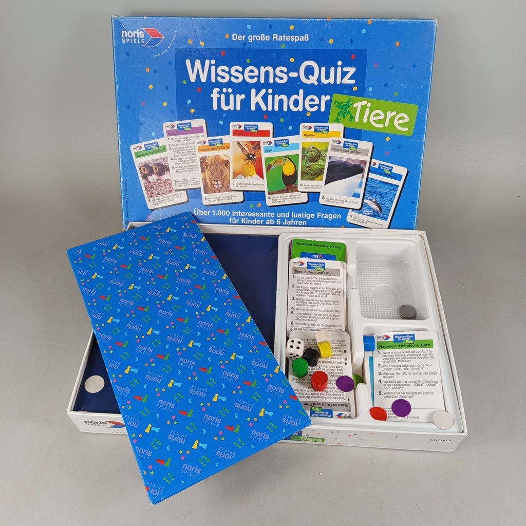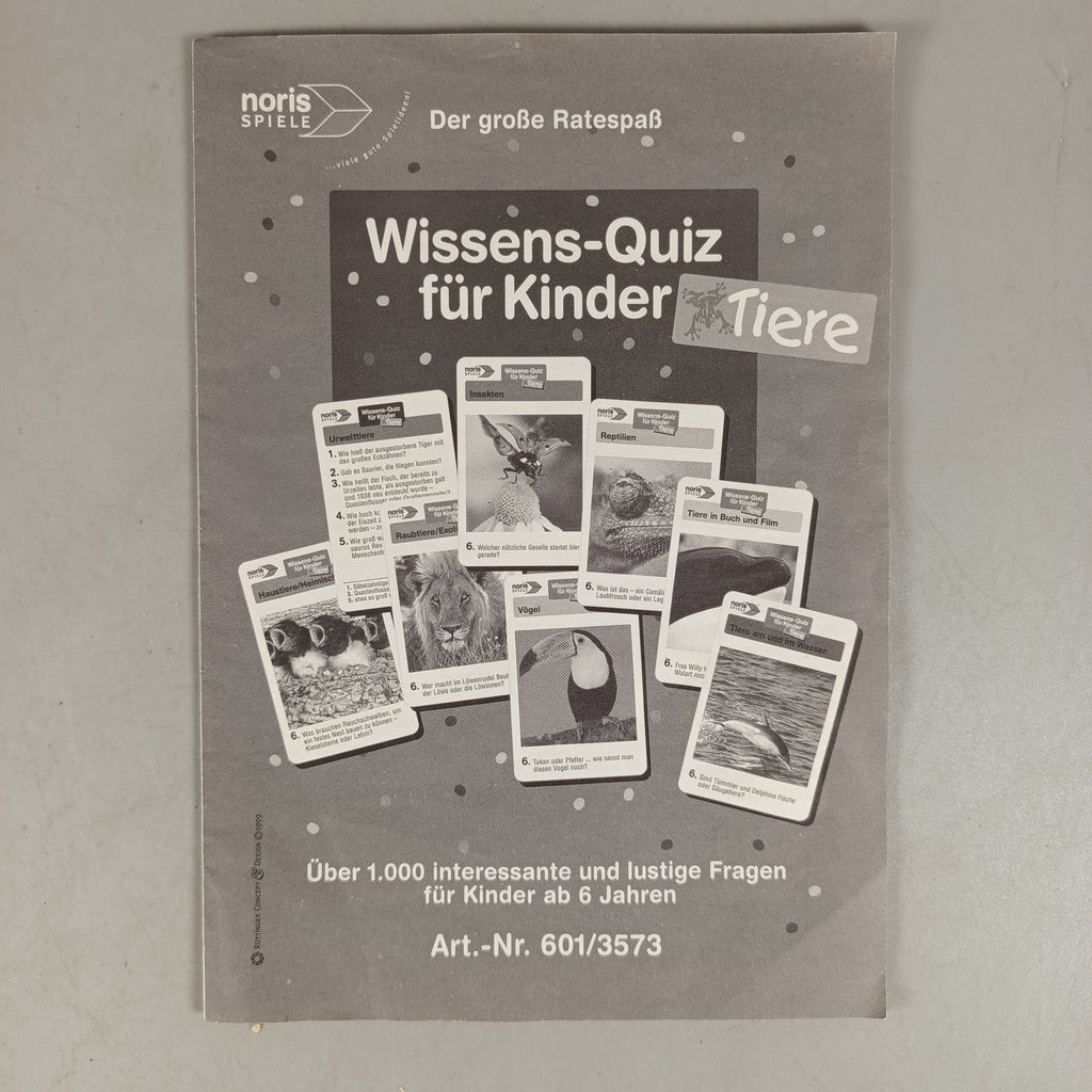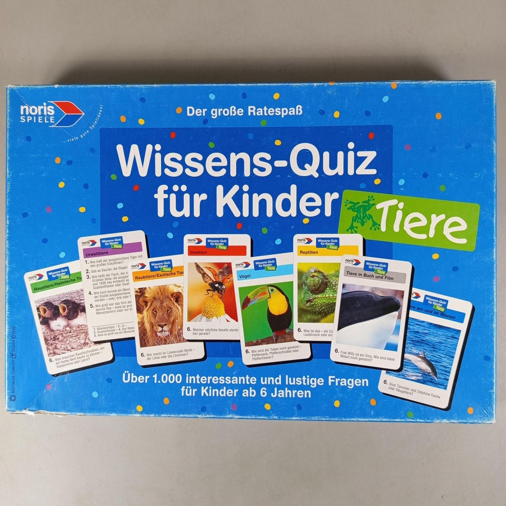 Hol dir das spannende Wissens-Quiz für Kinder zum Thema Tiere von Noris Spiele! Mit über 1.000 Fragen aus Kategorien wie Insekten, Reptilien, Haustiere und Vögel bietet es stundenlangen Ratespaß. Das Spiel enthält Karten, Spielfiguren und einen Würfel. Verpackung und Anleitung sind vorhanden, minimale Gebrauchsspuren sichtbar. Die Vollständigkeit konnte nicht überprüft werden. Perfekt für neugierige Köpfe ab 6 Jahren – gib diesem Quizspiel ein neues Zuhause und lerne spielerisch Wissenswertes über die Tierwelt!