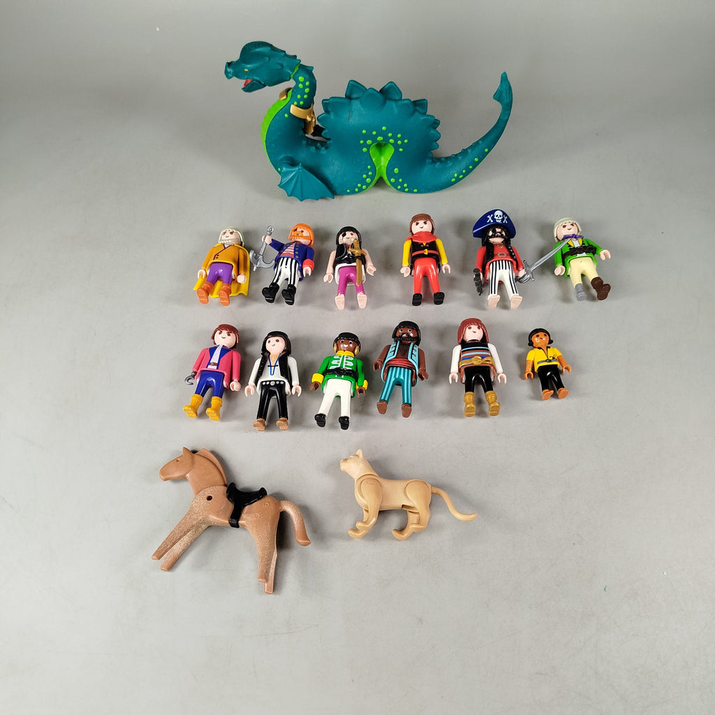 Hol dir das Playmobil Figuren-Set mit 12 Charakteren und 3 Tierfiguren, darunter ein Drache, ein Pferd und eine Raubkatze. Zahlreiches Zubehör wie Waffen, Fässer, Kisten, Werkzeuge, Leitern und Dekoobjekte lädt zu fantasievollem Spielen ein. Verpackung fehlt, aber das Spielzeug ist in sehr gutem gebrauchten Zustand. Gib diesen Spielzeugen ein neues Zuhause und fördere kreatives Rollenspiel. Sicherheitshinweis: Nicht für Kinder unter 3 Jahren geeignet, da Kleinteile verschluckt werden können.