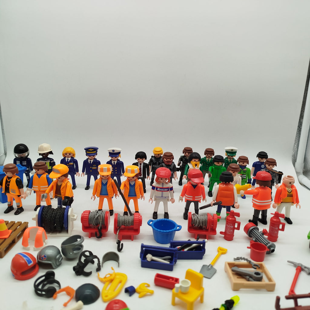 Hol dir das Playmobil Figuren-Set mit spannenden Themen aus Polizei, Rettung und Recycling! Dieses umfangreiche Set enthält 30 Figuren sowie zahlreiche Zubehörteile wie Helme, Werkzeuge, Feuerlöscher, Seilrollen, Tragen und Verkehrskegel. Ideal für fantasievolle Rollenspiele. Das Set befindet sich in einem sehr guten gebrauchten Zustand, die Originalverpackung fehlt. Gib diesen Playmobil-Figuren ein neues Zuhause und unterstütze nachhaltiges Spielen. Hinweis: Nicht für Kinder unter 3 Jahren geeignet, da Kleinteile verschluckt werden können.