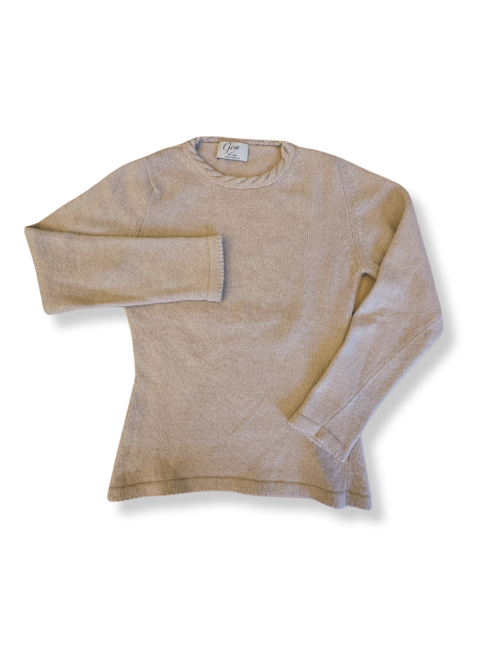 GOYO - Ein beiger Pullover aus hochwertiger Wolle, der Wärme und Komfort bietet. Das schlichte Design macht ihn vielseitig kombinierbar für lässige oder elegante Outfits. Perfekt für kühle Tage. Die Verarbeitung sorgt für Langlebigkeit und ein angenehmes Tragegefühl.