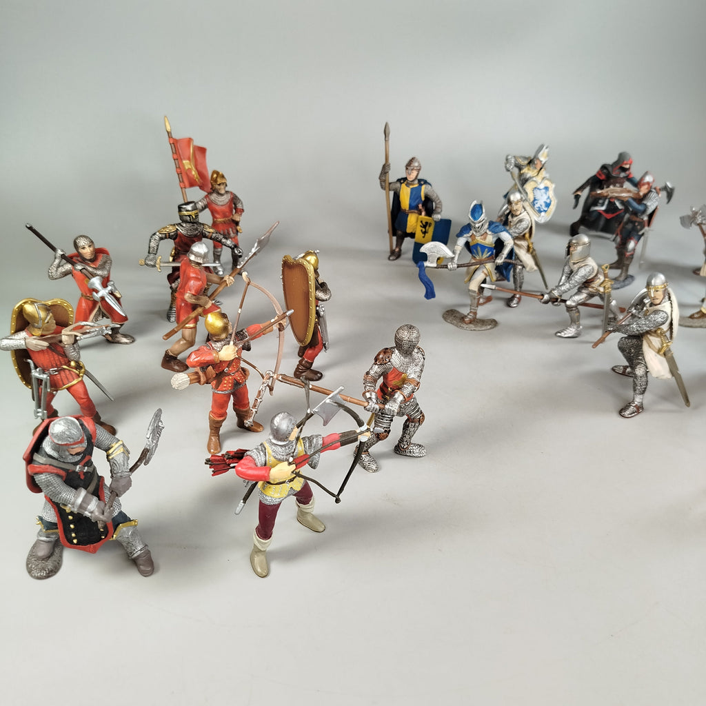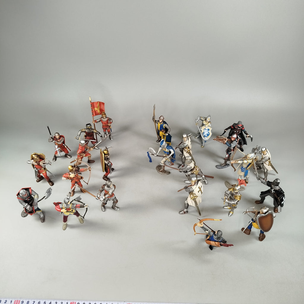 Hol dir das detailreiche Schleich Ritter- und Krieger-Set mit 24 handbemalten Figuren im mittelalterlichen Stil. Die Figuren tragen Rüstungen, Schilde, Schwerter und Banner wie das mit goldener Lilie verzierte rote Fahnenmotiv. Ideal für fantasievolle Schlachten- und Rollenspiele. Alle Figuren bestehen aus robustem Kunststoff und sind ca. 7–9 cm groß. Das Set befindet sich in einem sehr guten gebrauchten Zustand, die Originalverpackung fehlt. Gib diesen hochwertigen Figuren ein neues Zuhause und fördere kreative Abenteuerwelten. Hinweis: Nicht für Kinder unter 3 Jahren geeignet, da Kleinteile verschluckt werden können.