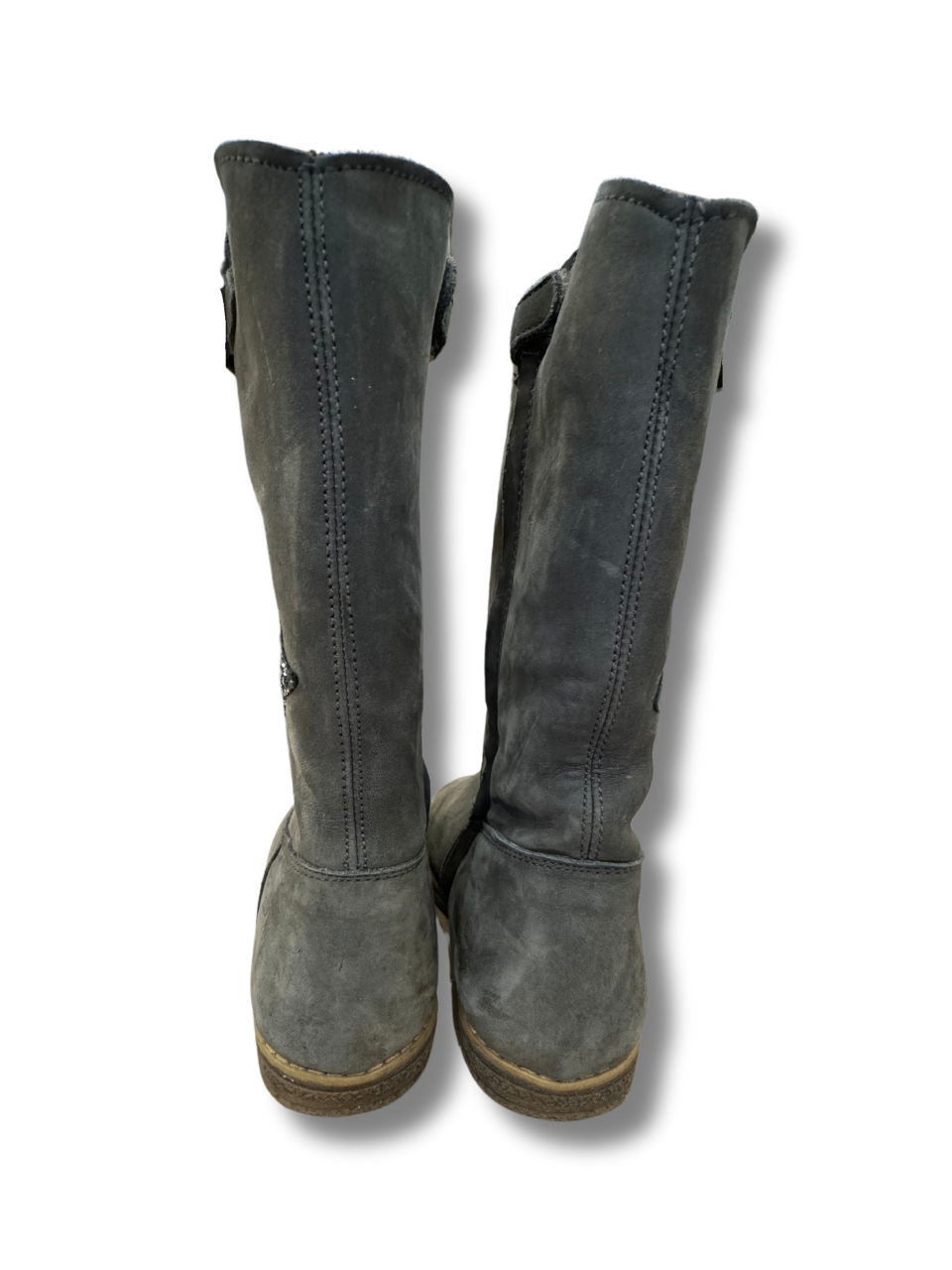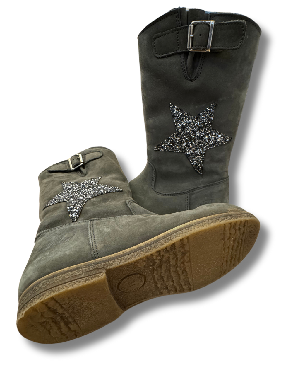 CLIC! - Diese grauen Lederstiefel setzen mit ihren glitzernden Sternapplikationen ein stilvolles Statement. Sie sind komplett mti Lammfell gefüttert und halten mollig war! Perfekt für einen lässig-coolen Look, der auffällt. Die robuste Sohle sorgt für bequemen Halt. Sie sind ideal für kühlere Tage. NP: 119 EUR