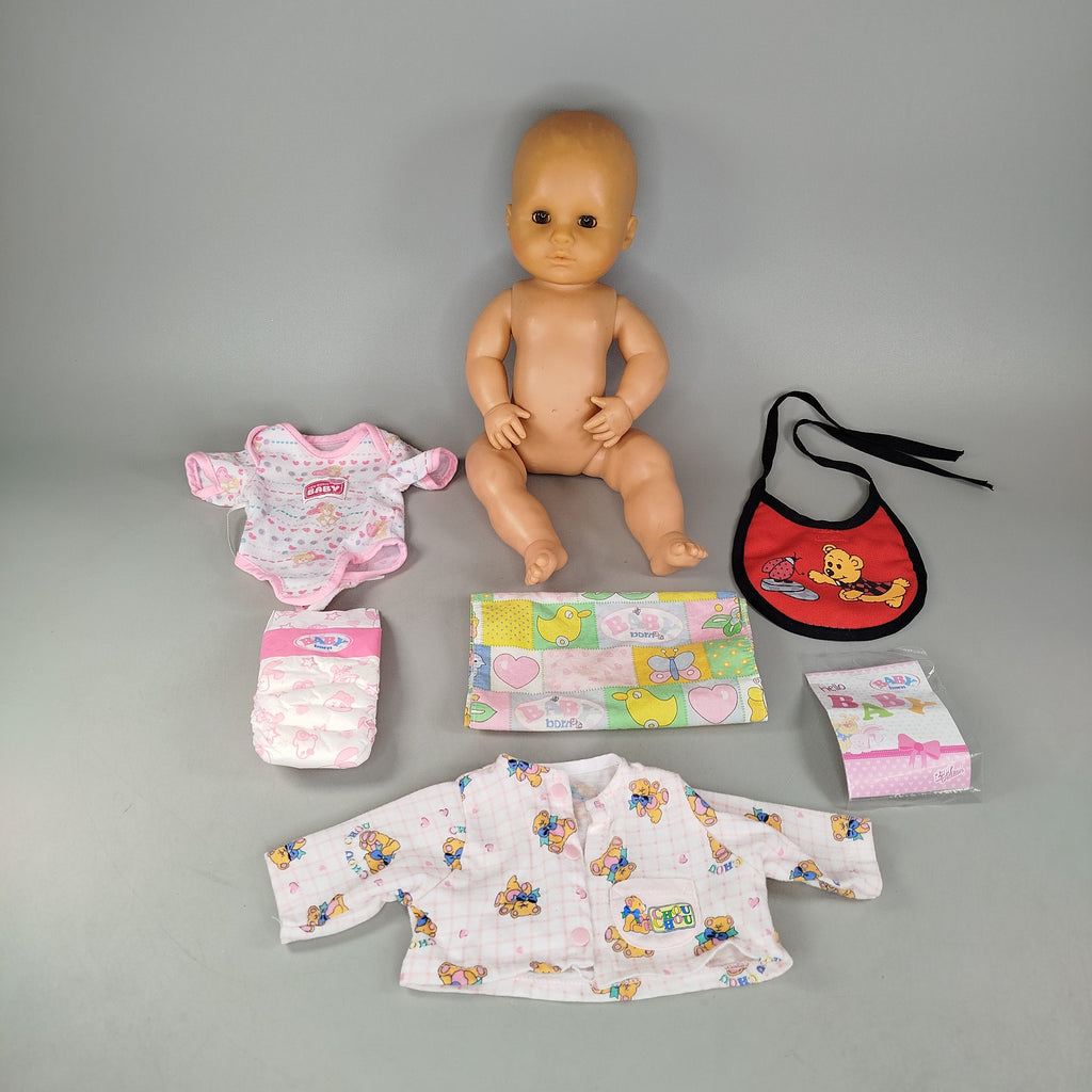 Hol dir das liebevoll gestaltete Baby born Puppenzubehör-Set mit zwei Puppen und umfangreichem Zubehör. Enthalten sind ein faltbares Bettchen mit Matratze, Kleidung, Windeln, Fläschchen, Schnuller, Töpfchen und weitere Accessoires für realitätsnahes Puppenspiel. Beide Puppen tragen Baby born Kleidung und zeigen leichte Gebrauchsspuren, jedoch im sehr guten Zustand. Verpackung fehlt, Vollständigkeit nicht geprüft. Ideal für Rollenspiele und kreatives Spielen. Hinweis: Enthält Kleinteile – nicht für Kinder unter 3 Jahren geeignet.
