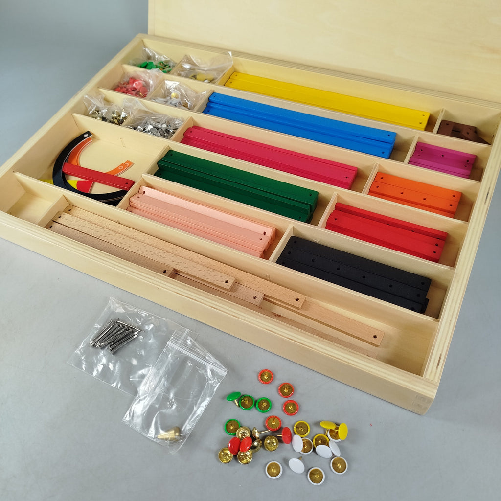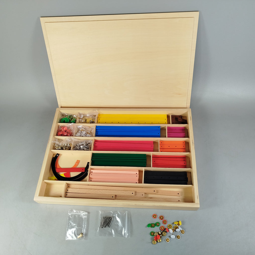 Hol dir das vielseitige Geometriekasten-Bauspielzeug und entdecke spielerisch Formen und Konstruktionen. Das Lernspiel besteht aus einer Holzbox mit Klappdeckel und vielen farbigen Lochleisten in unterschiedlichen Längen sowie Verbindungselementen aus Metall und bunten Steckpins, mit denen geometrische Figuren und einfache Bauwerke entstehen. Das Spielzeug fördert räumliches Denken, Feinmotorik und mathematisches Verständnis und ist ideal für freies Konstruieren. Gib diesem Lernspiel ein zweites Leben und unterstütze nachhaltiges Spielen. Enthalten sind Holzbox, diverse Lochleisten, Schraub- und Steckelemente als Konstruktionsmaterial. Hinweis gemäß GPSR: Enthält Kleinteile, nicht geeignet für Kinder unter 3 Jahren.