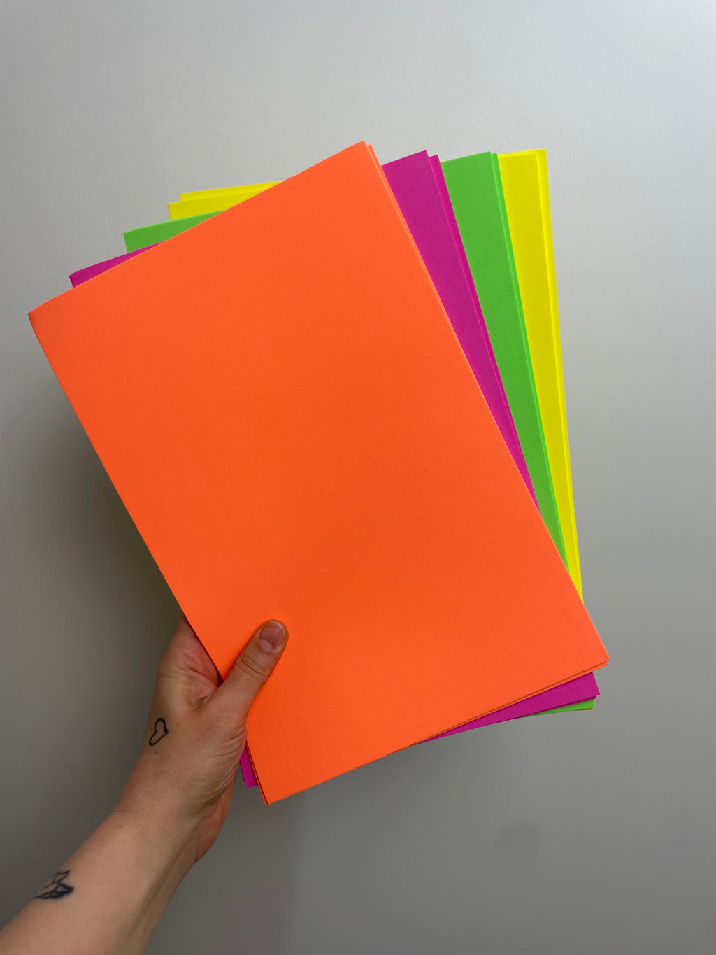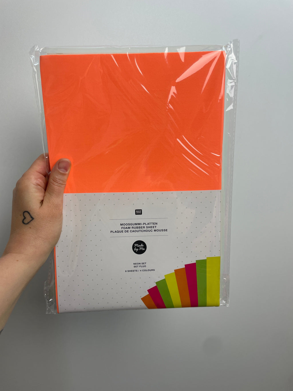 - Inhalt: 8 Moosgummiplatten in 4 verschiedenen Neonfarben zum Basteln, Schneiden, Stanzen und Kleben