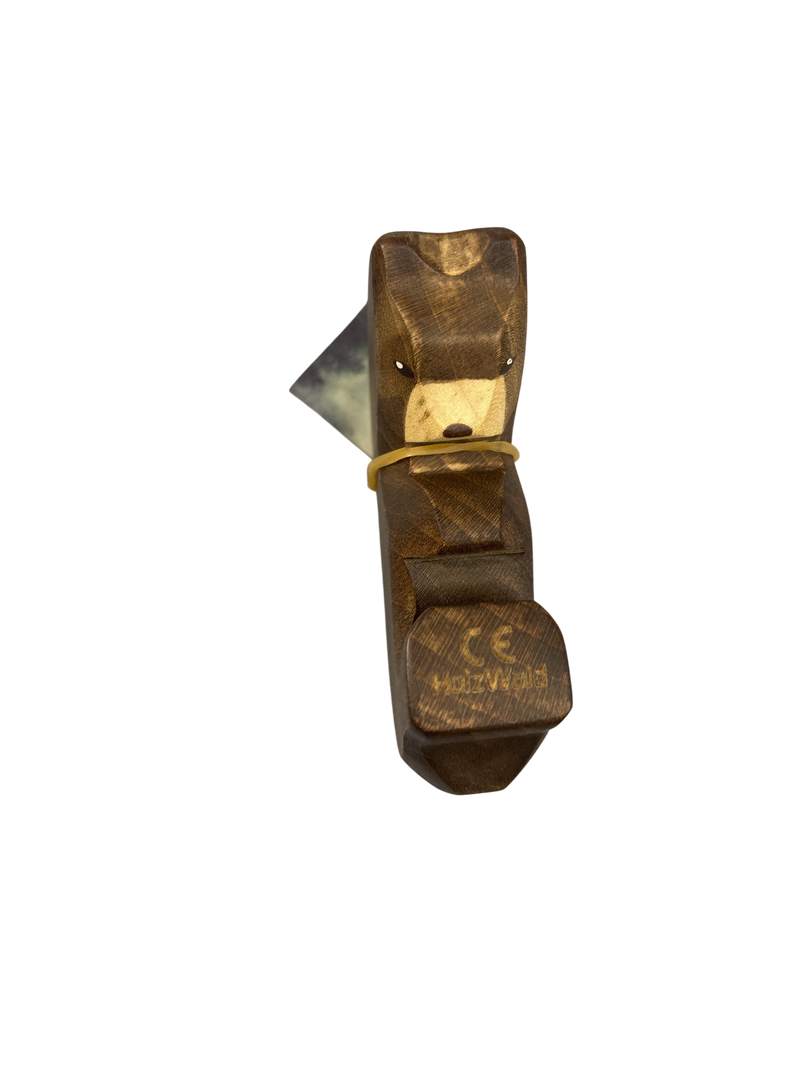 Gefertigt aus robustem Holz ist der Bär langlebig, nachhaltig und eine bewusste Alternative zu Kunststoffspielzeug. Perfekt als erstes Spielzeug oder als liebevolles Geschenk für Kleinkinder.