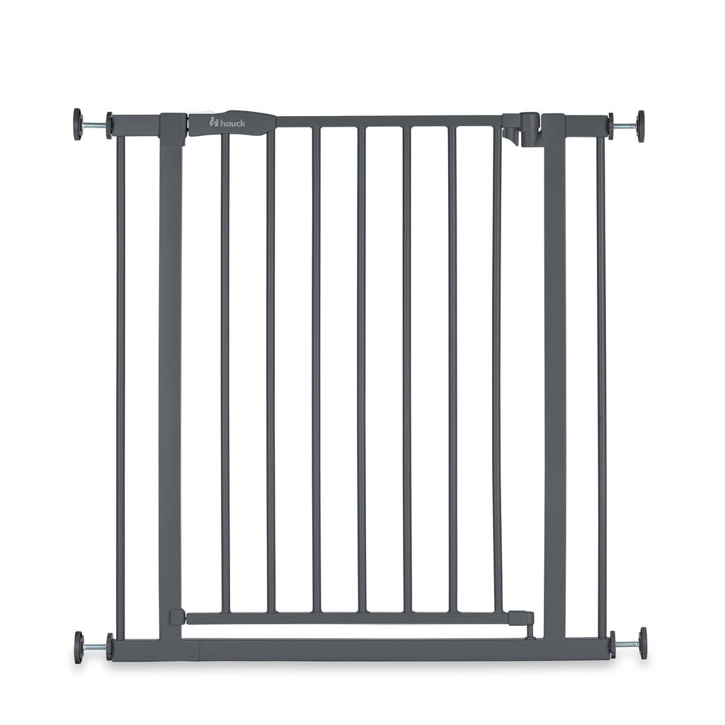 Produktbeschreibung hauck Open N Stop 2 - Das klassische Tür- & TreppengitterDas hauck Schutzgitter ist die perfekte Lösung, um Türen und Treppen kindersicher abzusperren – ganz ohne Bohren. Es eignet sich für Öffnungen von 75 bis 80 cm (ohne zusätzliches Zubehör). Dank 1-Hand-Öffnung lässt sich die Tür bequem in beide Richtungen öffnen. So bleibt eine Hand immer frei für dein Kind oder Einkaufstaschen. Die Montage ist schnell und einfach: Das Gitter wird mit vier Stellschrauben zwischen Türrahmen oder Wand eingespannt – es entstehen keine Bohrlöcher. Mit dem mitgelieferten Wandkappen-Set ist das Gitter direkt einsatzbereit. Das Gitter ist modular erweiterbar: Mit separat erhältlichen Verlängerungen (9 oder 21 cm) kannst du es an breitere Durchgänge anpassen. Für Treppengeländer mit Rundholmen benötigst du zusätzlich die hauck Y-Spindel (separat erhältlich). Ob als Treppenschutz oder Türsicherung – dieses Gitter bietet maximale Sicherheit und vielseitige Einsatzmöglichkeiten für den Alltag mit Kind. Selbstjustierendes Schutzgitter – kein Qualitätsmangel bei schiefem Seitenteil: Das Gitter ist ein selbstjustierendes Klemmgitter: Das Seitenteil kann beim Auspacken leicht schief stehen – das ist normal und kein Defekt. Beim Anziehen der Stellschrauben wird es automatisch geradegezogen. So entsteht ein sicherer, stabiler Halt und das Gitter sitzt parallel und fest in der Öffnung. Warnhinweise WARNUNG: Vor der Montage ist die Gebrauchsanleitung zu lesen, da eine fehlerhafte Montage gefährlich sein kann. WARNUNG: Dieses Kinderschutzgitter darf nicht an Fenstern angebracht werden. WARNUNG: Niemals ohne Wandbefestigungsteller verwenden. Dieses Kinderschutzgitter ist nur für den häuslichen Gebrauch vorgesehen. Das Kinderschutzgitter kann an festen formstabilen Untergründen mit dem mitgelieferten Befestigungsmaterial angebracht werden. Dies gilt auch für Verlängerungen, die mit dem Produkt kompatibel sind bzw. mitgeliefert werden. Das Kinderschutzgitter entspricht EN 1930:2011. Automatisches Schließsystem. Geeignet für Kinder bis zu 24 Monaten. Doorgate 75 cm – 80 cm + Optional Extension 9 cm: 84 cm – 89 cm + Optional Extensions 9 cm + 9 cm: 93 cm – 98 cm + Optional Extension 21 cm: 96 cm – 101 cm + Optional Extensions 9 cm + 21 cm: 105 cm – 110 cm + Optional Extensions 21 cm + 21 cm: 117 cm – 122 cm