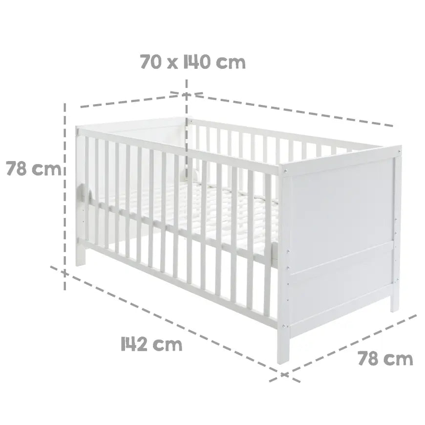 - umbaubar zum Kinderbett für lange Nutzungsdauer (dafür ist die unterste Position des höhenverstellbaren Kinderbetts vorgesehen)