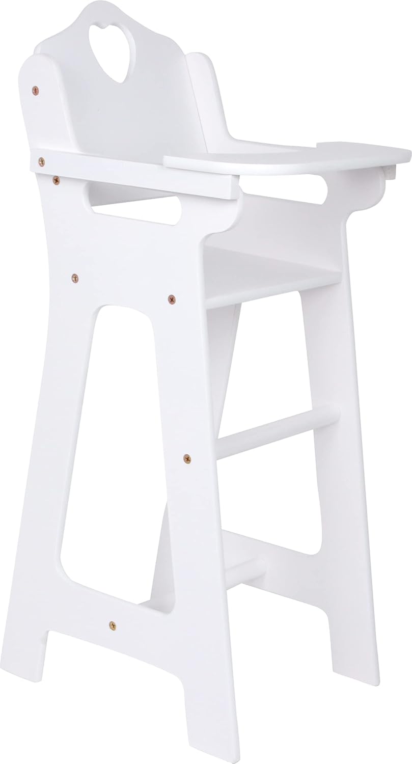 Small Foot Puppenhochstuhl aus weiß lackiertem Holz, Puppenzubehör mit klappbarem Tisch, für Kinder ab 3 Jahre, 2872