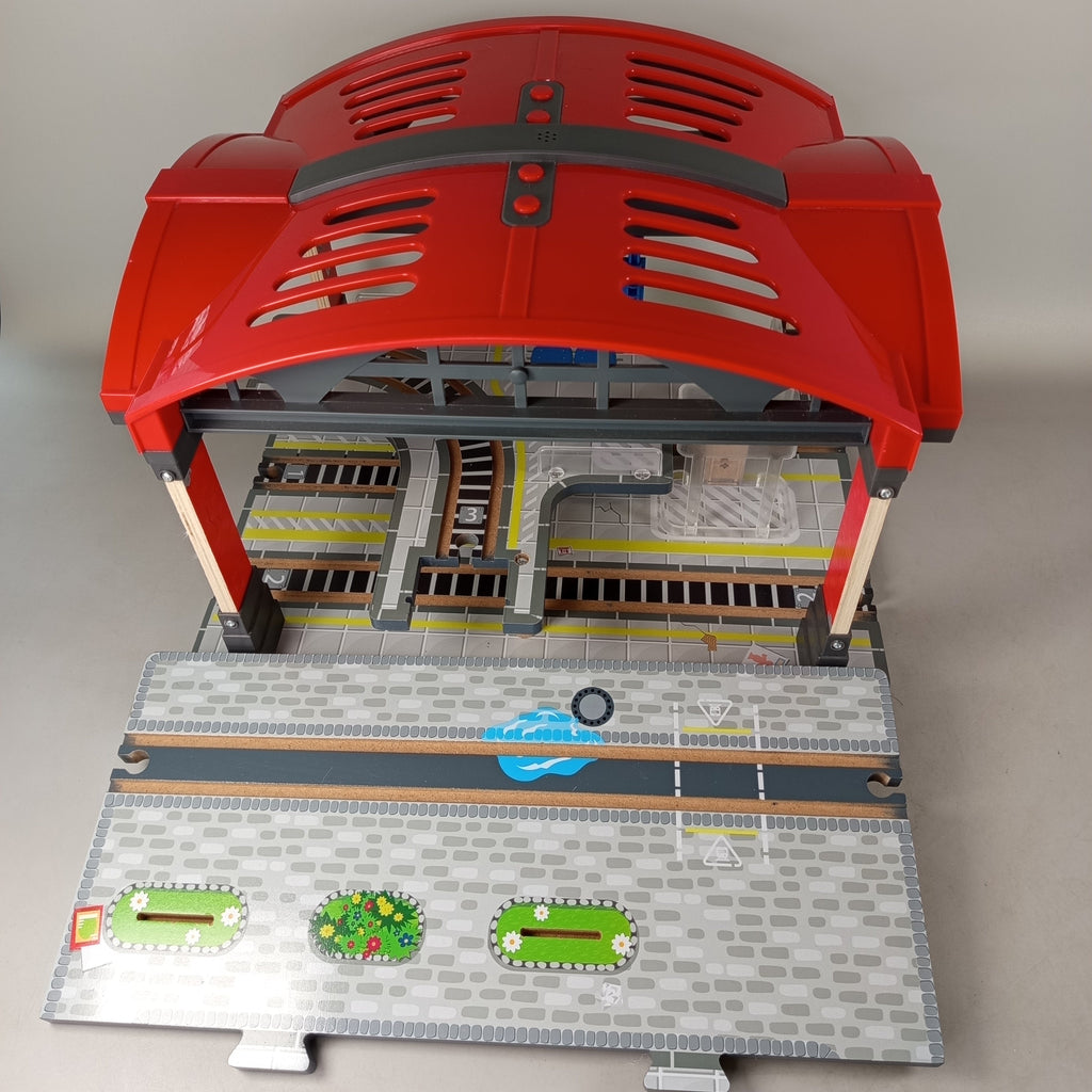 Hol dir das Holzeisenbahn Spielset mit Bahnhof und verschiedenen Fahrzeugen! Dieses faszinierende Set besteht aus nummerierten Holzschienen, einem roten Bahnhofsgebäude mit erhöhten Gleisen, einer weißen Zugkabine, einer blauen Lok und drei Spielfiguren. Außerdem ist ein blaues elektronisches Modul integriert, das zusätzlichen Spielspaß bietet. Die Verpackung fehlt, die Anleitung ist nicht enthalten. Das Set zeigt nur geringe Gebrauchsspuren, die Vollständigkeit konnte nicht überprüft werden. Gib diesem robusten Holzspielzeug ein neues Zuhause und fördere spielerisch Kreativität und Motorik.