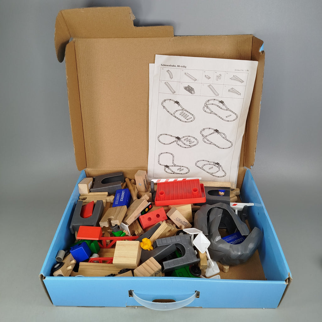 Hol dir das Holzspielzeug-Set mit einer 80-teiligen Holz-Eisenbahn und einem 4-teiligen Playtive Junior Baustellenfahrzeug-Set. Beide bestehen aus echtem Holz, FSC-zertifiziert und mit sicherer Verarbeitung. Die Lokomotive besitzt eine Vorwärts- und Rückwärtsfunktion. Ideal für kreative Rollenspiele mit Schienen, Fahrzeugen und Zubehör. Das Spiel befindet sich in gutem gebrauchten Zustand mit leichten Gebrauchsspuren. Die Vollständigkeit konnte nicht überprüft werden. FSC® C013092 und FSC® C101896 zertifiziert.