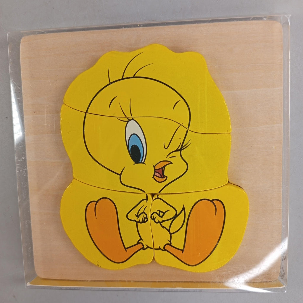 Hol dir das farbenfrohe Holzspielzeug-Set mit beliebten Looney Tunes Figuren wie Tweety, Sylvester und Bugs Bunny! Dieses Set umfasst ein Holzbilderbuch mit 4 doppelseitigen Seiten, ein 3-teiliges Tweety-Puzzle, ein Perlenlabyrinth mit Figurenmotiv sowie eine Holzrassel mit bunten Stäben. Alle Teile bestehen aus stabilem Holz und zeigen nur minimale Gebrauchsspuren. Die Spielzeuge fördern die Feinmotorik und visuelle Wahrnehmung. Gib diesen charmanten Holzspielzeugen ein neues Zuhause und mach kleinen Fans eine Freude! Das Set ist vollständig, jedoch ohne Originalverpackung. Sicherheitshinweis: Nicht für Kinder unter 3 Jahren geeignet – Erstickungsgefahr durch Kleinteile.