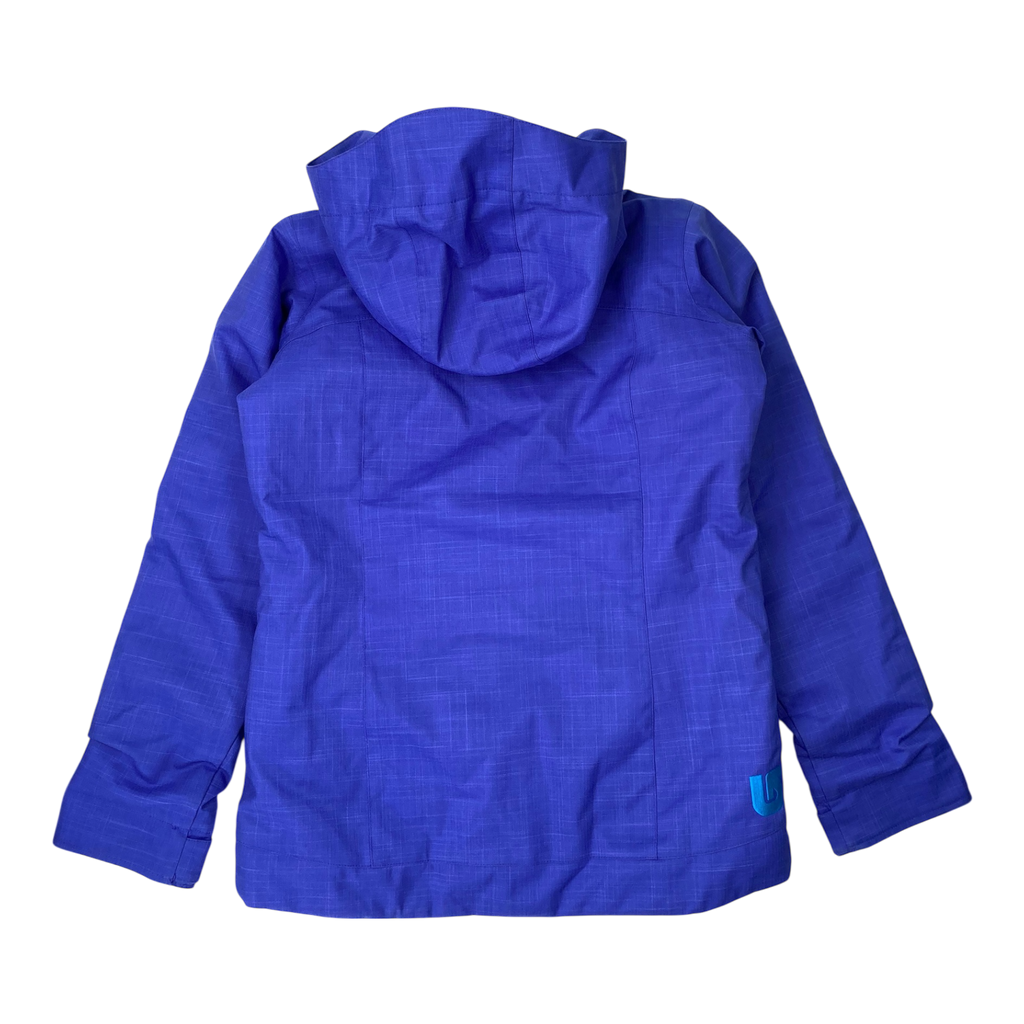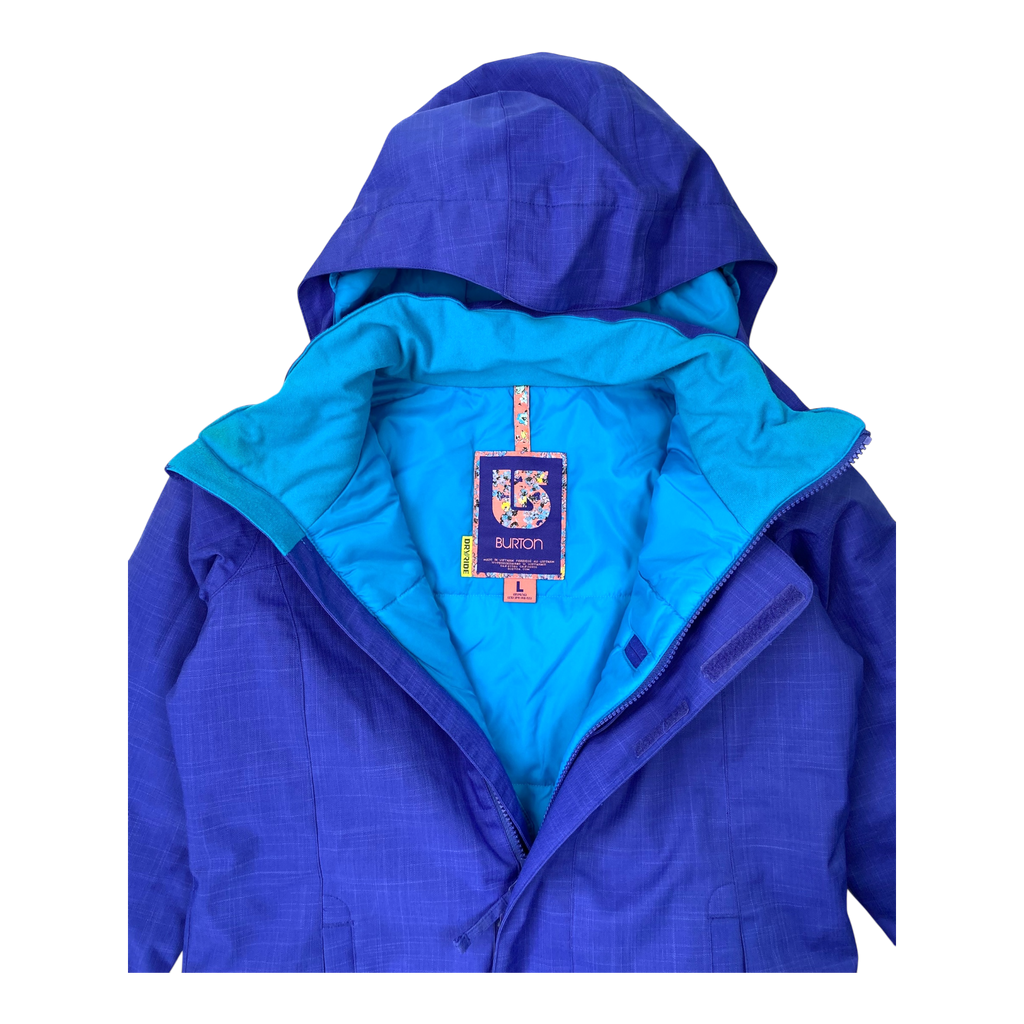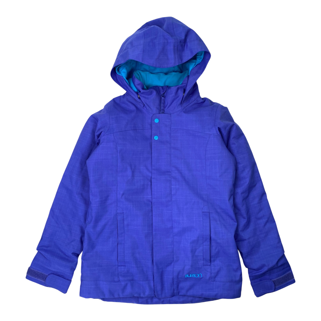 Burton ski jacket in blue. Hood and collar protects from the wind. Sleeve cuffs can be adjusted with velcro straps. Snow lock in hem.