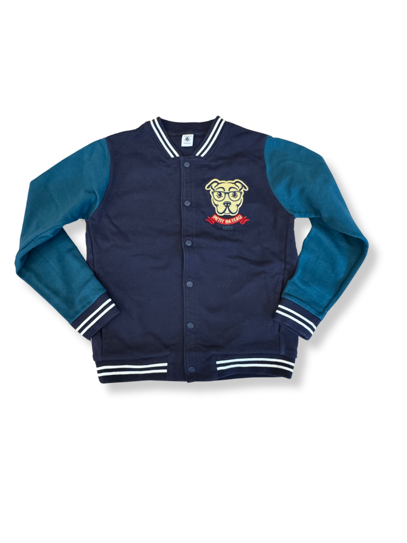 Hey Jungs, hier habe ich ein cooles Secondhand-Kleidungsstück für euch: diese Jacke von Petit Bateau in Blau und Rot, Größe 140.