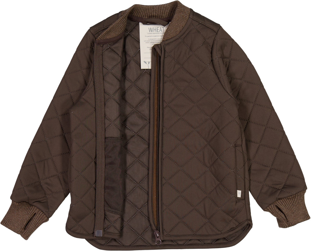 993R Thermo – 100% recyceltes PolyesterHergestellt in China22 AutumnVorsichtig auf 30 Grad waschenBügeln auf niedriger TemperaturNicht SchleudernNicht TrockenreinigenNicht bleichenWheat OuterwearOur bestselling Thermo Jacket in beautiful solid colours for the junior child.- Regular fit- Rib collar and cuffs- Thumb hole in rib cuff- Open welted pocket at the side seam- Zipper with chin guard- ReflectorsWheat’s popular thermo wear for children is a true everyday favourite, as the soft and lightweight material makes it comfortable to move and play in. The thermo jacket is produced in 100% recycled polyester and can be used as a cozy layer indoor and as practical transitional outerwear. It is not waterproof but is water repellent and is suitable for the damp autumn weather. The thermo jacket can easily be styled with the matching thermo pants or with one of our other thermo pants in solid colours to complete the look. It is great for in between seasons and is perfect as an extra layer underneath rainwear or technical outerwear during the colder seasons. The jacket is available in beautiful colours and hand drawn prints made by Wheat’s in-house design team. Technical details3-layer material for the ultimate isolation Water repellent (not waterproof)Standard 100 by OEKO-TEX® PFC-free Flourine-free water and soil repellent finish (BIONIC FINISH ECO)Composition100% recycled polyester