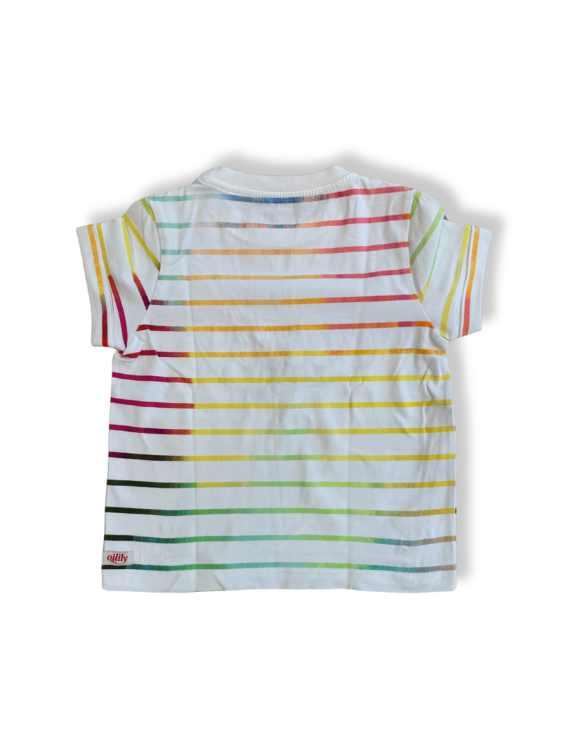 T-Shirt Weiß mit bunten Streifen Gr.104 | Qilily