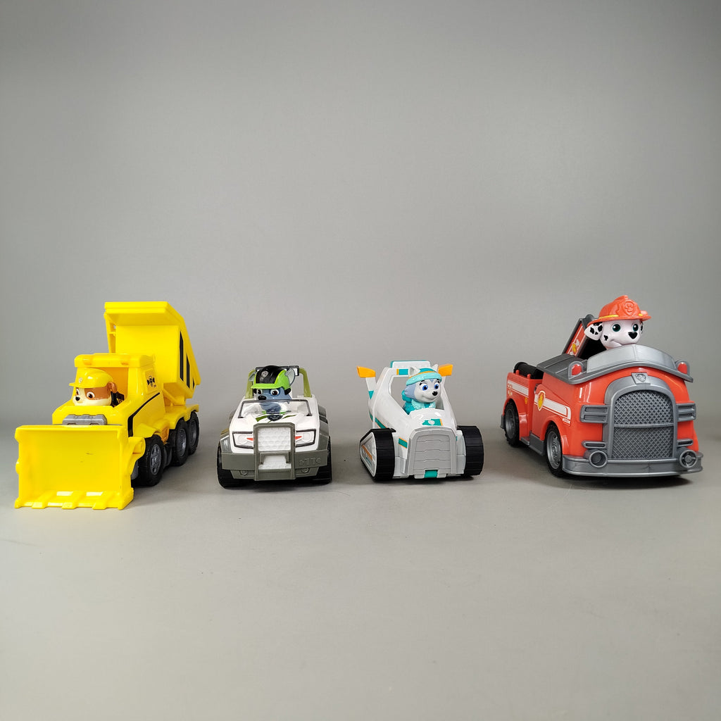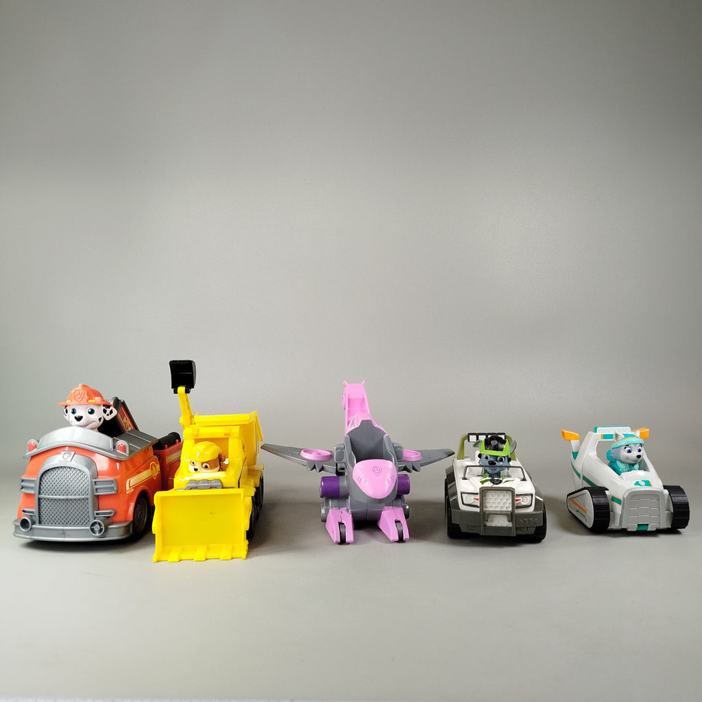 Hol dir das Paw Patrol Fahrzeug-Set und begleite die mutigen Fellfreunde auf ihren spannenden Missionen! Dieses Set enthält fünf Fahrzeuge mit fest integrierten Figuren und vier zusätzliche Charakterfiguren. Alle Teile bestehen aus robustem Kunststoff und zeigen leichte Gebrauchsspuren. Perfekt für kreative Rettungsabenteuer und Fans der beliebten Serie. Die Vollständigkeit konnte nicht überprüft werden. Hinweis: Nicht für Kinder unter 3 Jahren geeignet, da Kleinteile verschluckt werden können.