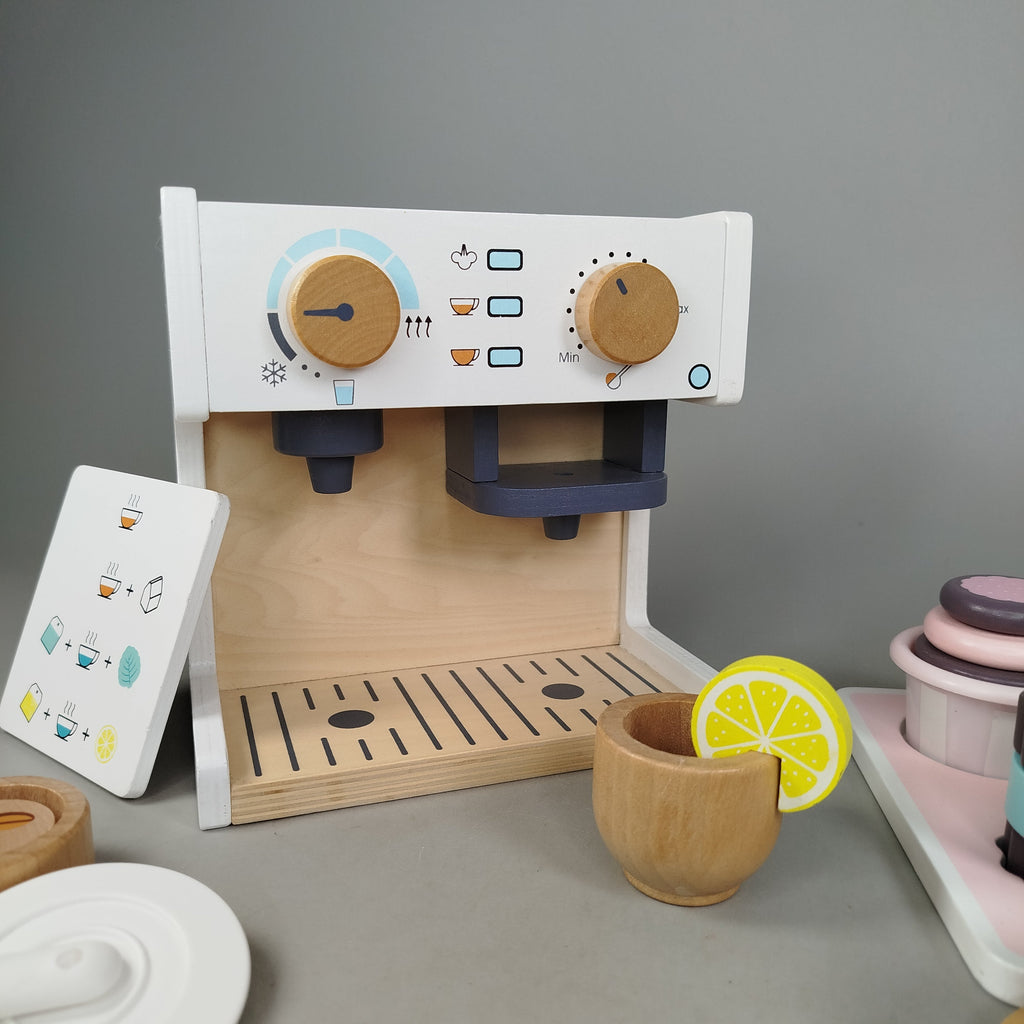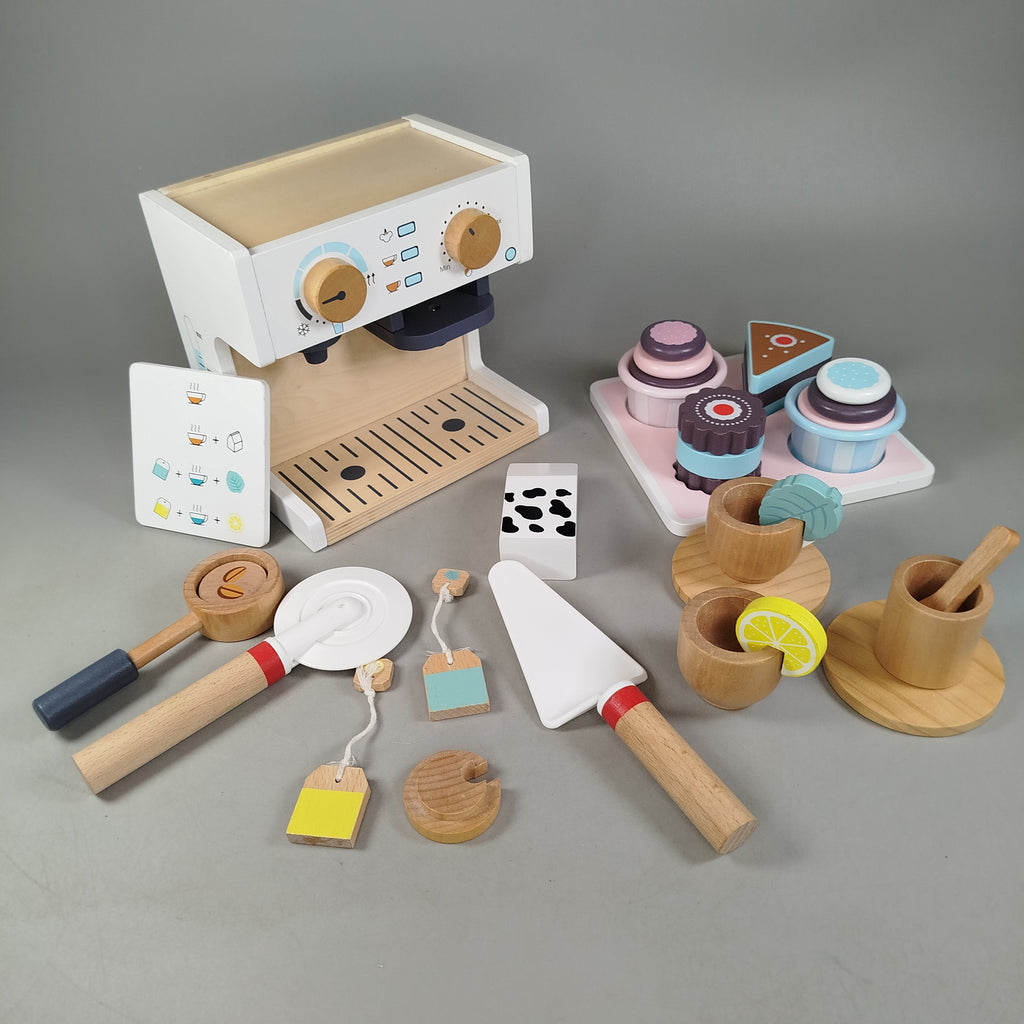 Hol dir die Vertbaudet Kaffee- & Dessertstation aus Holz für fantasievolles Rollenspiel im Kinderzimmer! Das Set enthält eine detailreiche Kaffeemaschine mit Drehknöpfen, drei Tassen, Teebeuteln, einem Milchkarton, vier Desserts, Tablett und weiterem Zubehör. Ideal zum Nachspielen von Café-Szenen und fördert die Kreativität. Das Spielzeug befindet sich in gutem gebrauchten Zustand mit leichten Gebrauchsspuren. Die Vollständigkeit konnte nicht überprüft werden. Verpackung fehlt. Hinweis: Enthält Kleinteile, nicht geeignet für Kinder unter 3 Jahren. Gib diesem schönen Holzspielzeug ein neues Zuhause!