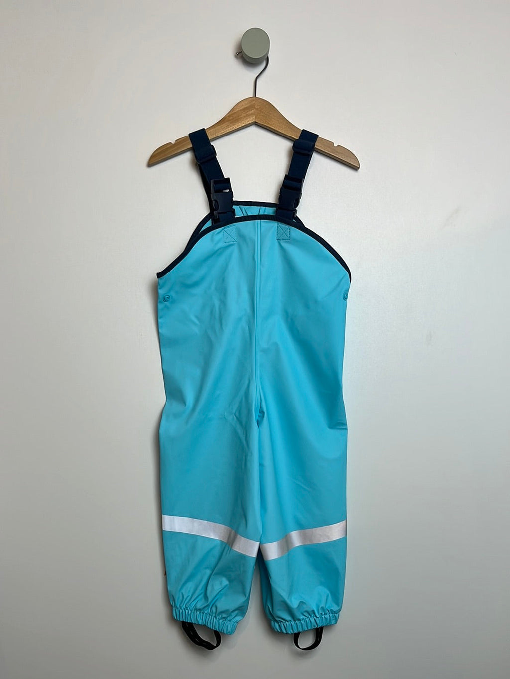 Für Kinder, die auch bei Regenwetter nicht auf den Spielplatz verzichten wollen. Die Regenhose ist ideal zum drüberziehen, so passt dann auch die Hose oder warme Unterwäsche noch gut darunter. Die Regenhose hat breite elastische Hosenträger die verstellbar sind und praktische Klick-Verschlüsse. Durch seitliche Druckknöpfe ist die Hose weitenregulierbar und wächst sozusagen mit ihrem Kind mit. Für den perfekten Sitz in den Gummistiefeln sorgt zudem ein elastischer Hosensteg, der über einen Knopf abgenommen werden kann. Mehrere Reflektoren sorgen bei Dunkelheit oder schlechtem Wetter für bessere Sichtbarkeit und sorgen so für ein erhöhtes Maß an Sicherheit.