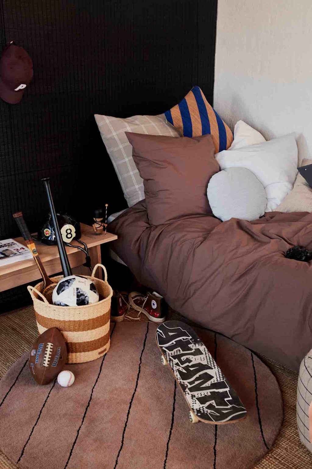 Please note that cushion fillings are sold separately. The Kyoto Floor Cushion Cover has a minimalistic and nostalgic design with a grid pattern. The Kyoto Cushion series consists of cushions in different colors and shapes. Create a cozy corner with floor cushions and soft blankets in the living room or in the kid’s room. Mix and match the different shapes and sizes for a fun and playful expression. The Kyoto Floor Cushion Cover is woven in organic cotton. We recommend washing the cushion cover at 30° - wash inside out.