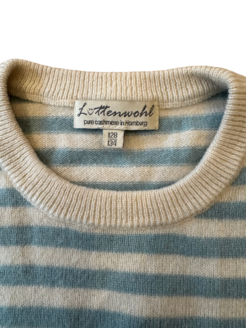 Pullover creme-türkis gestreift 100% Kaschmir Gr.128/134 | Lüttenwohl Kaschmir