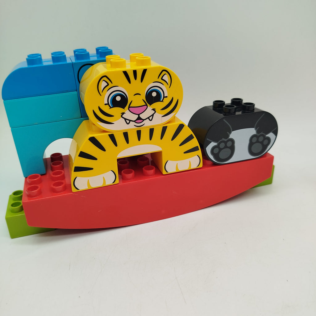 LEGO Duplo Meine erste Wippe mit Tieren – 10884 ist ein Bauset rund um das Balancieren von Tieren und enthält drei Tierfiguren: Tiger, Panda und Affe. Kinder können mit der Wippe und den robusten Duplo-Steinen motorische Fähigkeiten trainieren und spielerisch entdecken, wie das Gleichgewicht funktioniert. Altersempfehlung: 1–2 Jahre. Achtung: Nicht für Kinder unter 12 Monaten geeignet, Erstickungsgefahr.