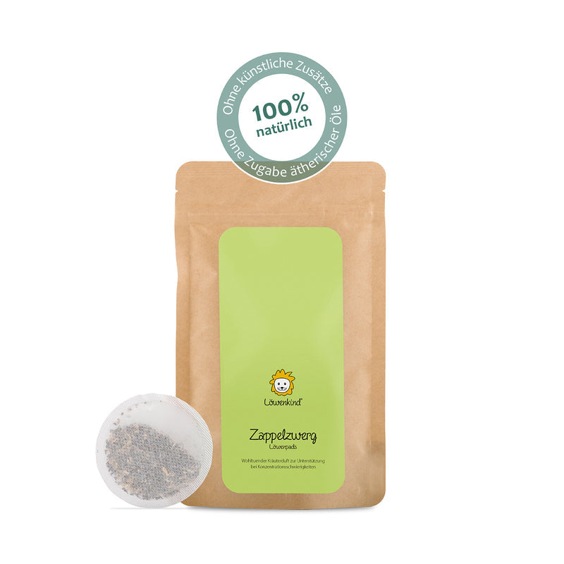 Die Löwenkind Zappelzwerg 10er-Packung bietet eine wirkungsvolle Kräuterbegleitung für aktive Kinder, die im Alltag oder in der Schule sanfte Unterstützung benötigen. Die enthaltenen Pads basieren auf einer sorgfältig abgestimmten Kräutermischung aus Melisse, Johanniskraut, Baldrian, Passionsblume und Zirbenflocken.
