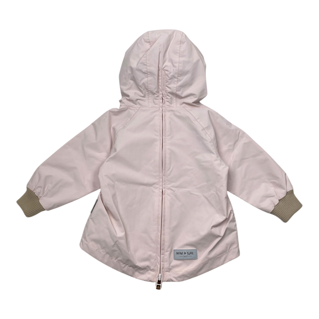 Mini A Ture baby Vito spring midseason anorak sample has a light quilted padding inside. The jacket has a zipper closure in the back, a large front pocket, ribbed cuffs and a reflecting logo on the back. Excellent condition.