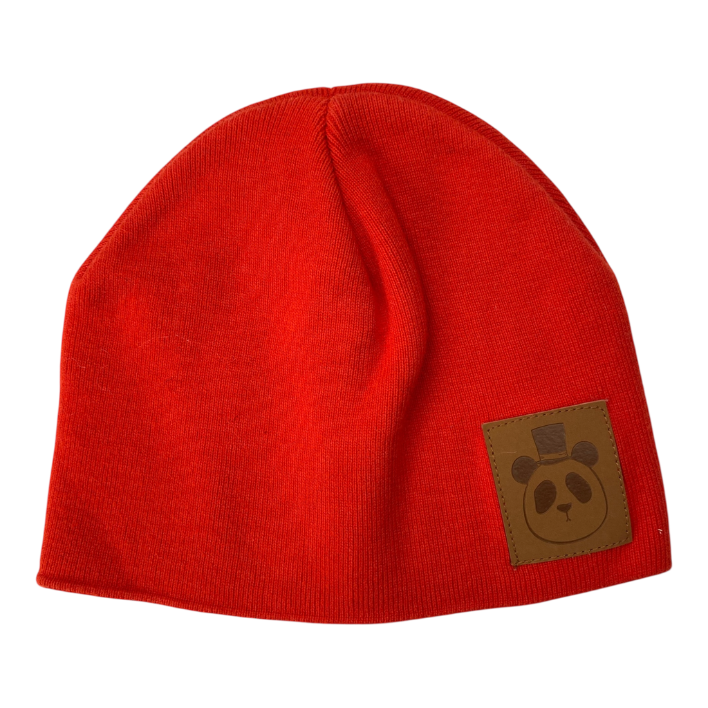 Mini Rodini knitted panda beanie, red | 52/54cm