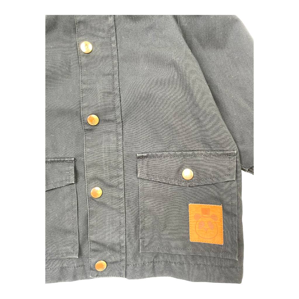 - Faux leather panda patch matching the zip slider