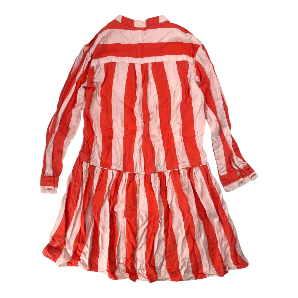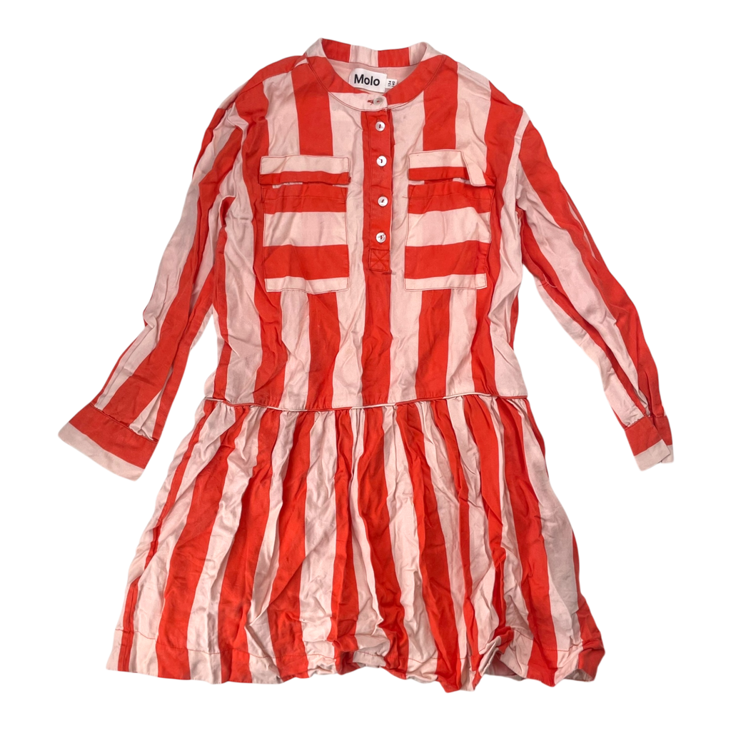 Molo Cacao stripe dress with long sleeves and buttons down the front. The flaps of the pockets have folded upwards but can probably be ironed down.