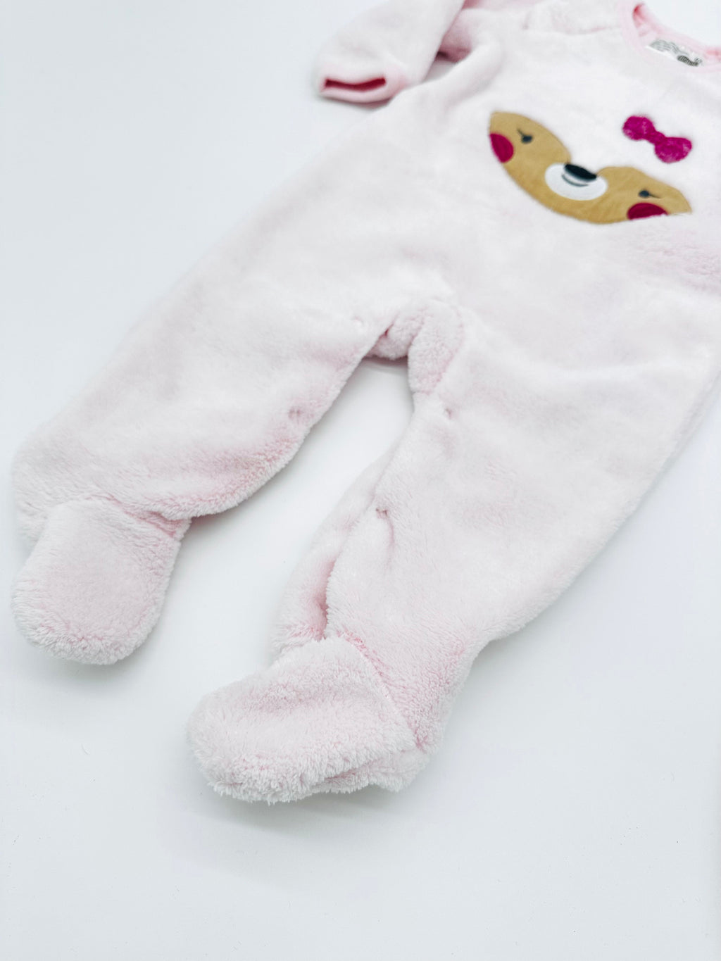 Weich, warm & einfach zum Verlieben! Dieser kuschelige Baby-Overall in zartem Rosa ist ideal für kühlere Tage und sanfte Träume. Das niedliche Bärenmotiv mit glitzernder Schleife macht ihn zu einem echten Hingucker - perfekt für kleine Kuschelmäuse.