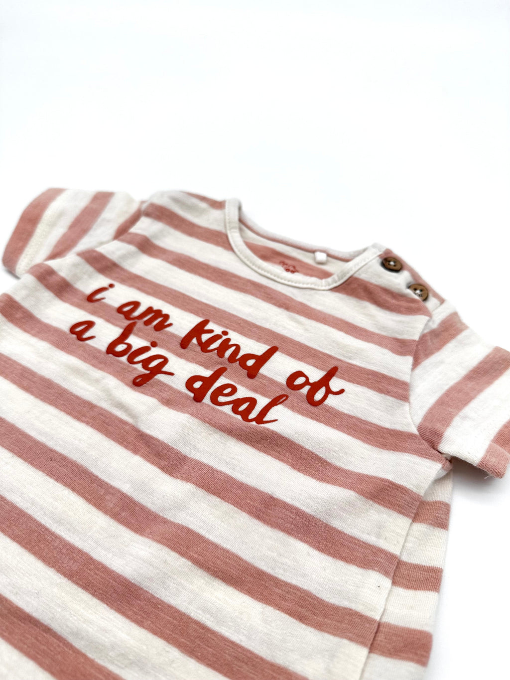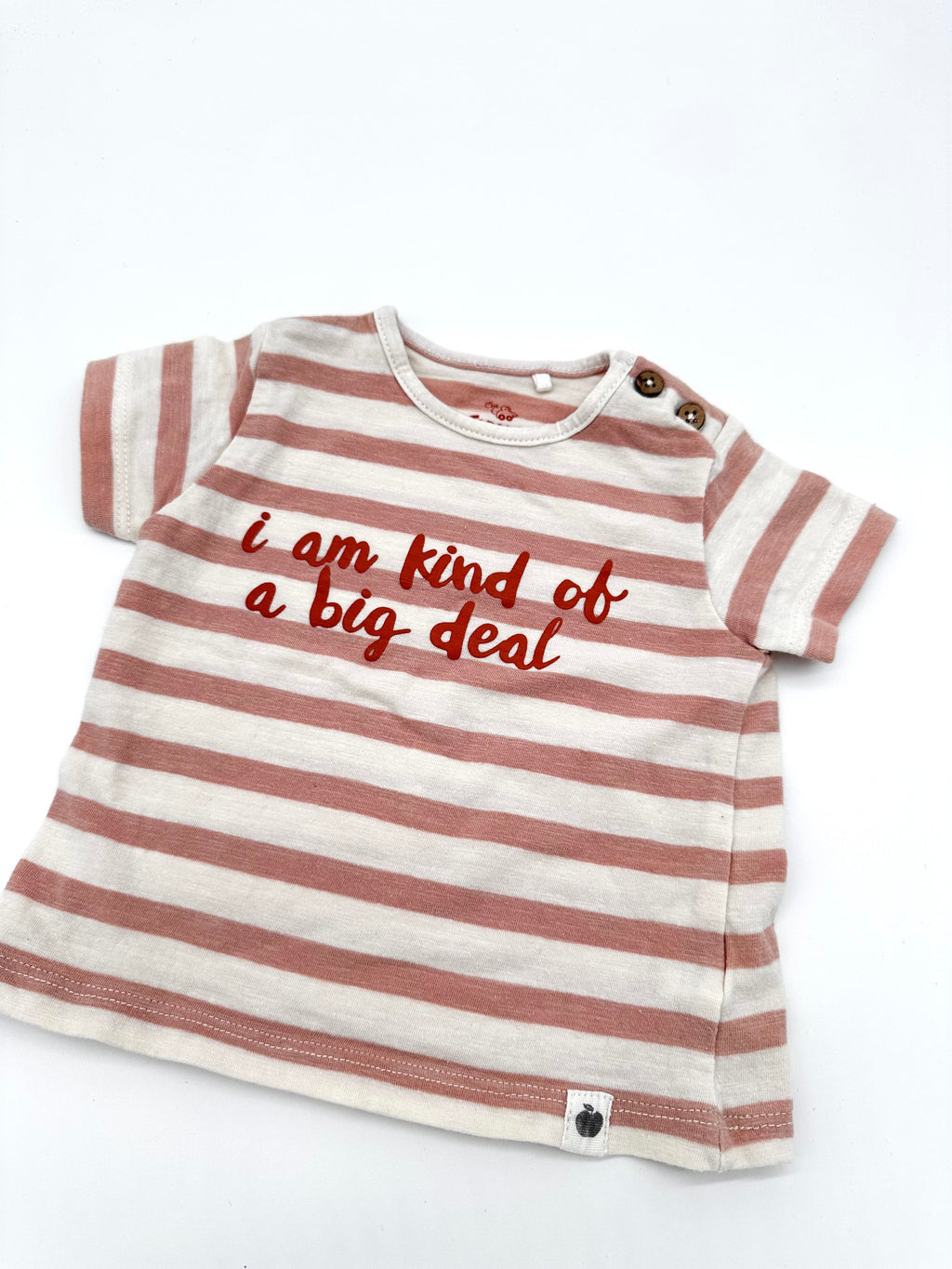 Dieses niedliche T-Shirt von Topomini vereint Komfort mit Charakter. Das gestreifte Design in sanften Naturtönen wird durch den auffälligen Aufdruck „I am kind of a big deal“ charmant ergänzt. Ideal für kleine Persönlichkeiten mit großer Wirkung!