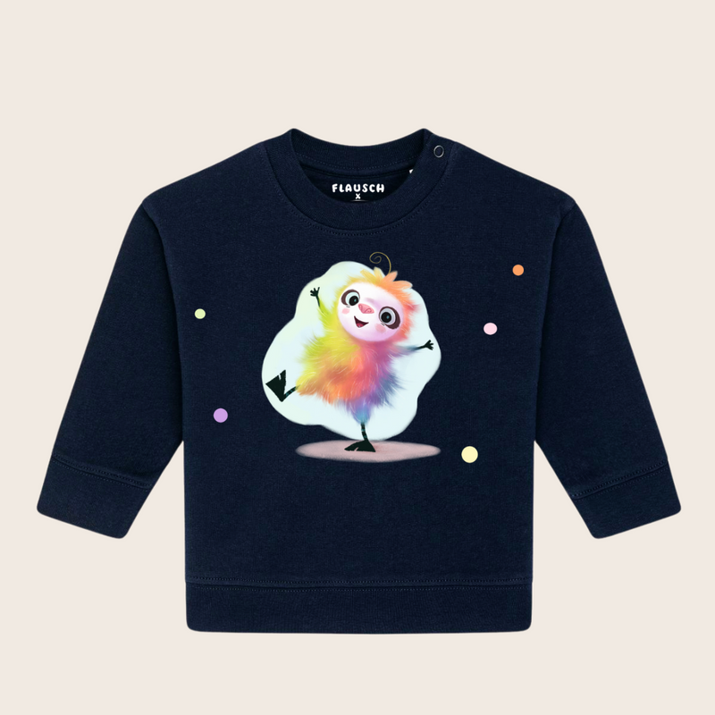 Mit unserem Baby Sweater wird die Welt von Flausch schon früh Teil des Lebens Eurer Kinder. Auch wenn sie die Geschichte noch nicht verstehen können, wachsen sie mit den Werten von Diversität und Akzeptanz auf. Die liebevollen Botschaften des Buches werden symbolisch mitgetragen und vermitteln Deinem Kind von Beginn an, dass es genau richtig ist, so wie es ist.