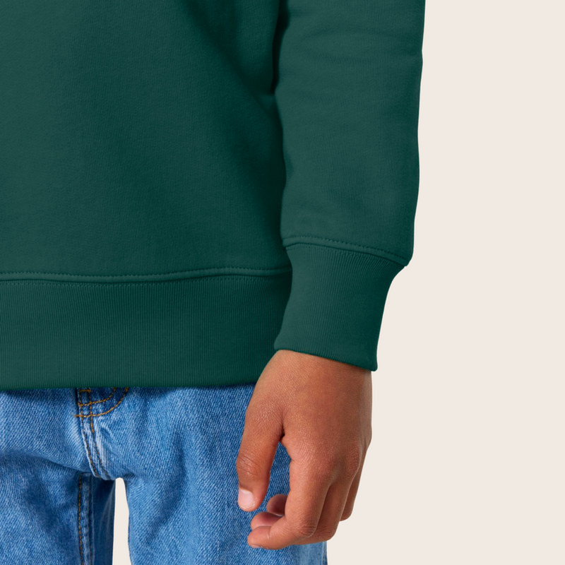 Der Sweater hat einen genderneutralen Schnitt und ist unter fairen und ökologischen Bedingungen hergestellt. Er besteht aus 100% GOTS-zertifizierter Bio-Baumwolle. Das weiche Material sorgt für ein angenehmes Tragegefühl bei allen Abenteuern, die daheim oder im Freien warten.