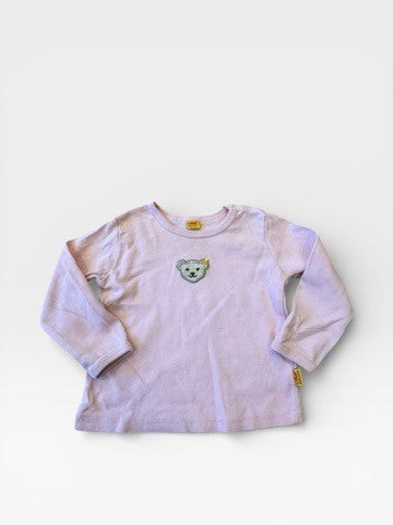 Das Langarm-Shirt mit Teddy-Motiv von Steiff ist ein süßes Kleidungsstück für Babys in Größe 68. Es zeigt ein niedliches Teddybärmotiv auf der Vorderseite und ist in einer zarten rosa Farbe gehalten.