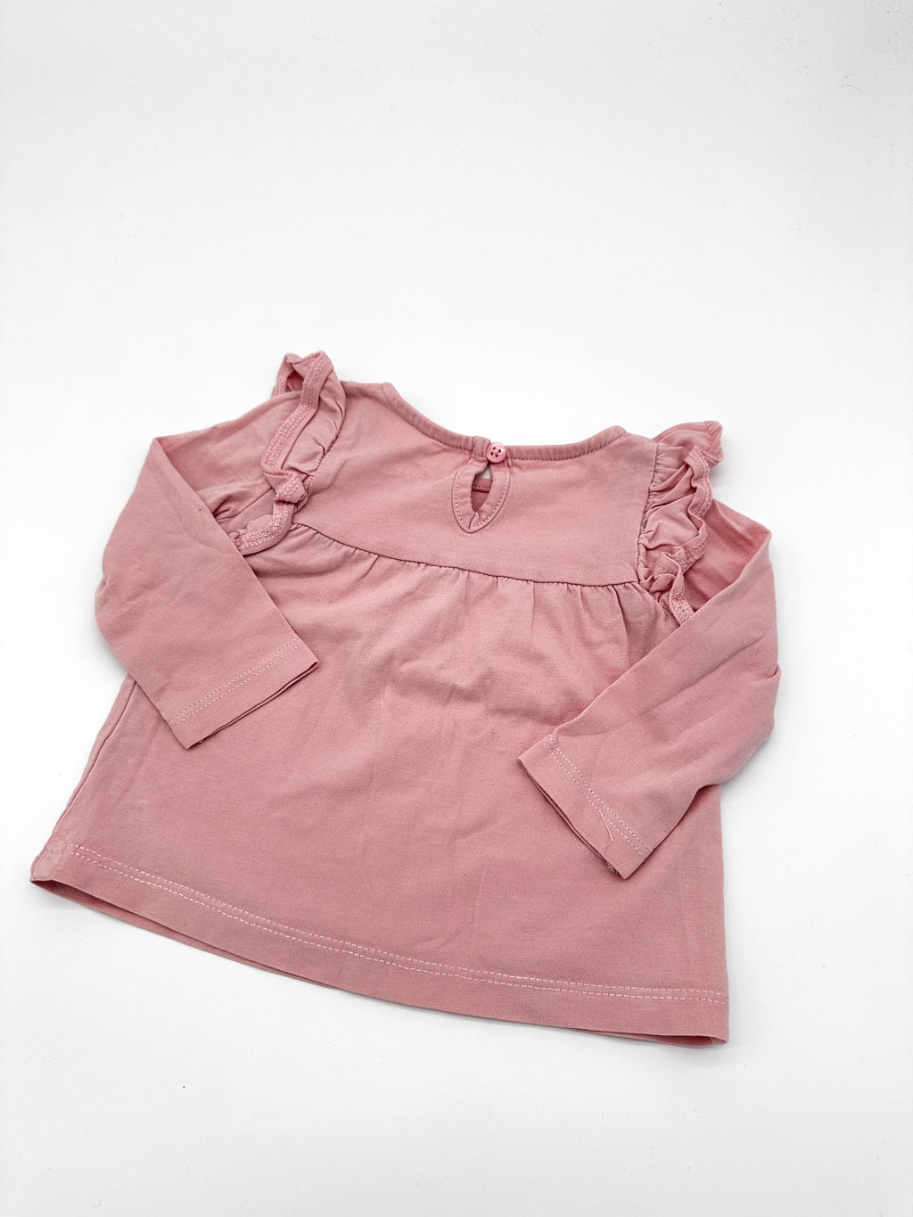 Dieses bezaubernde Langarmshirt von C&A in einem warmen Altrosa-Ton ist ein echter Hingucker für kleine Mädchen. Besonders hübsch sind die verspielten Rüschen an den Schultern sowie die aufgenähten Blüten-Applikationen auf der Vorderseite, die dem Oberteil einen zarten, festlichen Look verleihen.