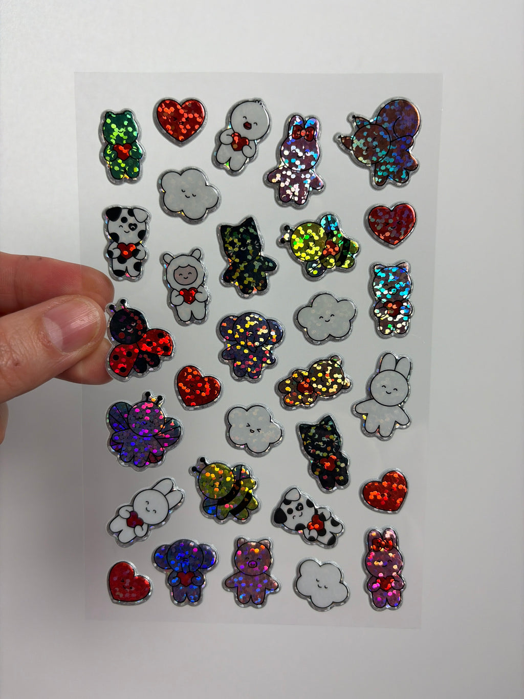 Die Puffy Sticker „Chingu“ zeichnen sich durch ihre sanft gepolsterte, plastische Oberfläche aus, die zusammen mit den holografischen Effekten eine auffällige Wirkung erzeugt. Sie eignen sich ideal zum Gestalten von Karten, Geschenken oder Bastelprojekten und bringen dort eine fröhliche Note ein. Die Sticker lassen sich leicht aufkleben und erweitern kreative Arbeiten um zusätzliche Struktur und Glanz.